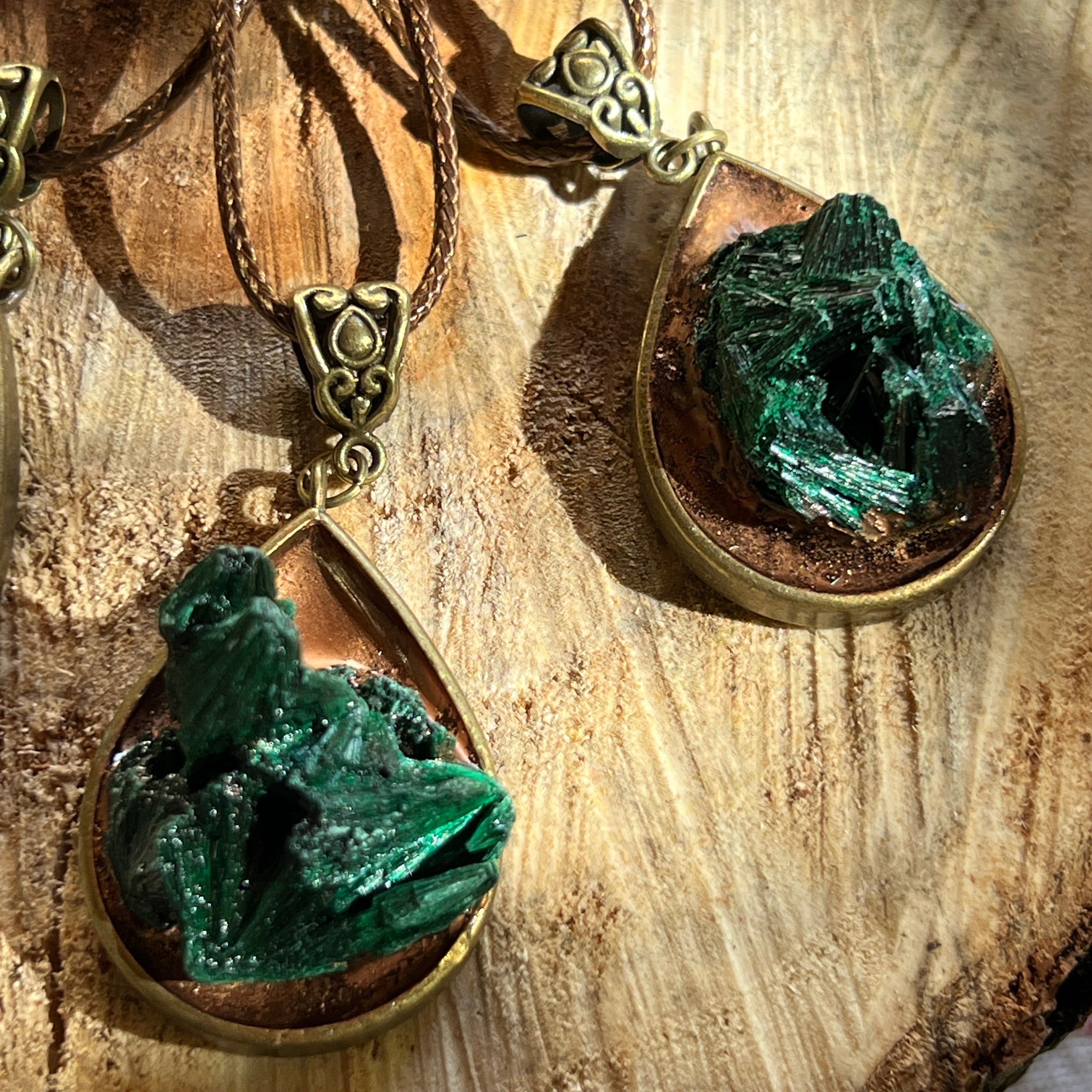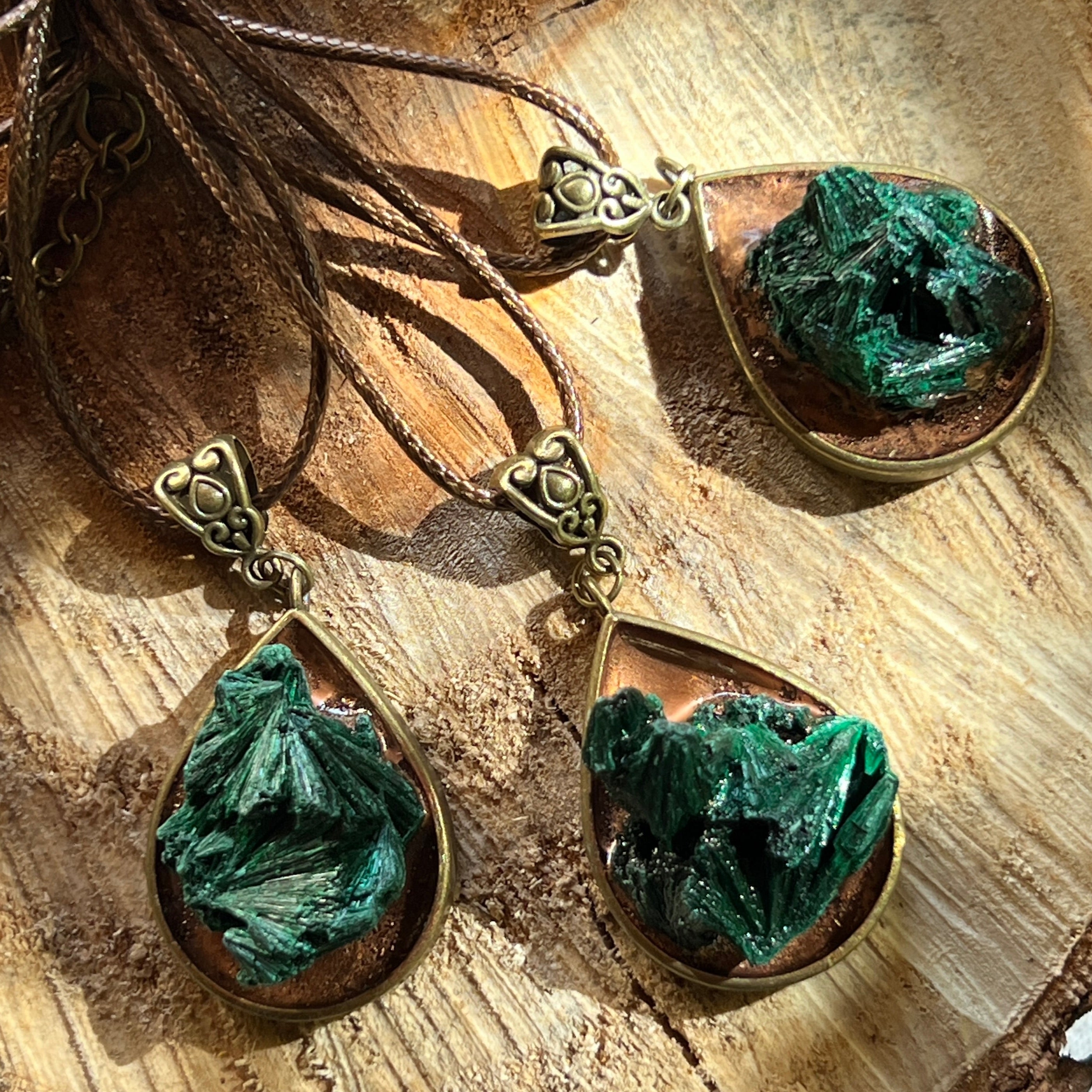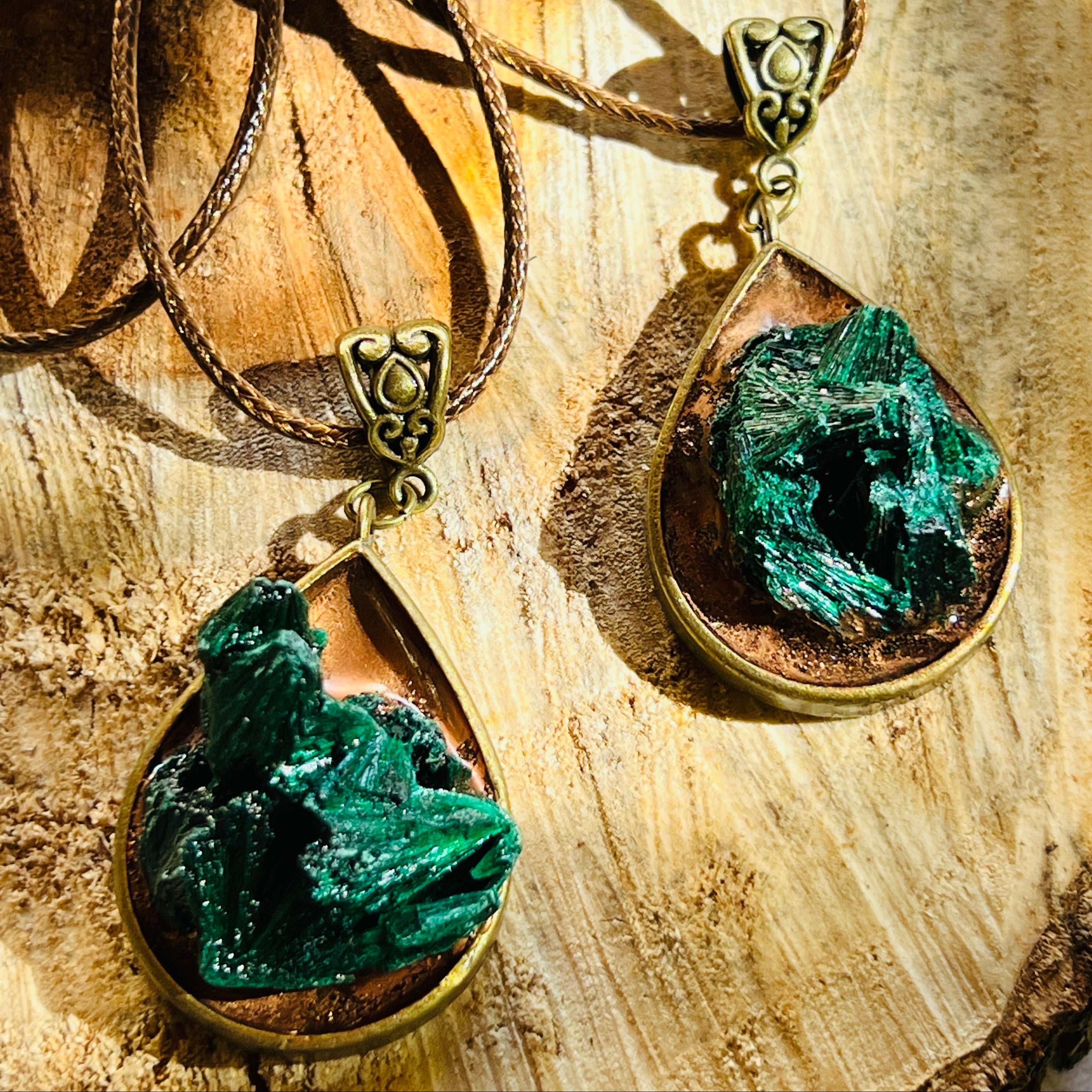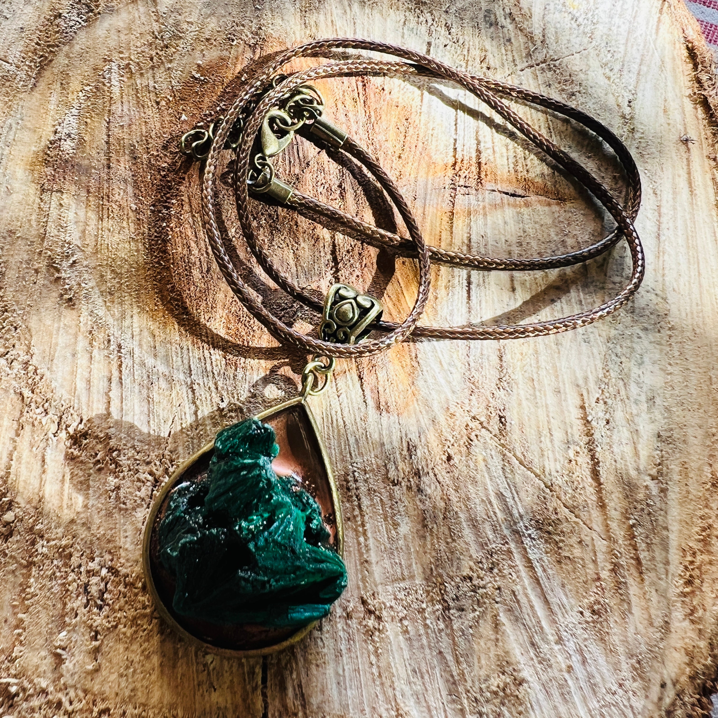 Суров копринен малахит и висулка от месинг - камък на трансформацията и смело сърце