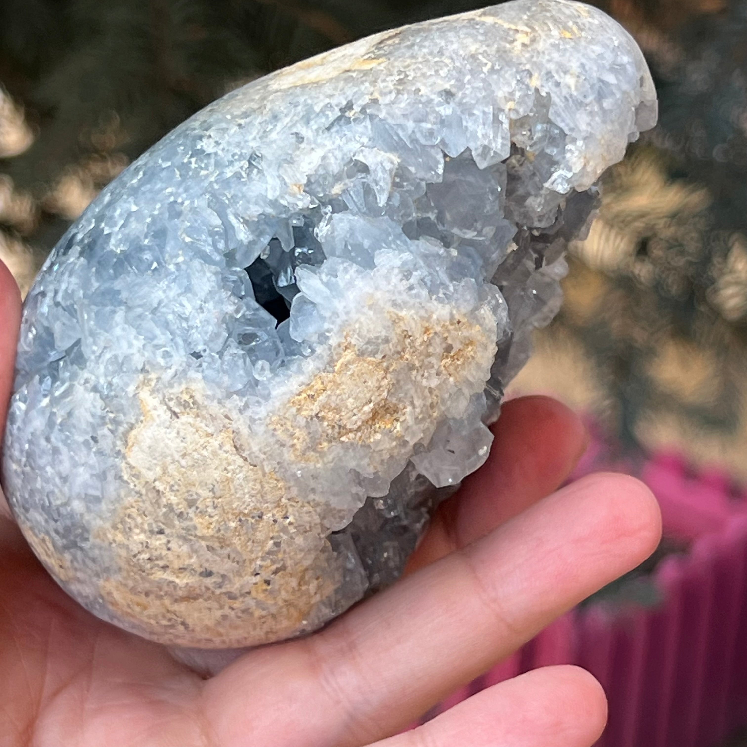 Яйце геода целестин /целестина модел 54, размер 11 см * 8 см * 6 см