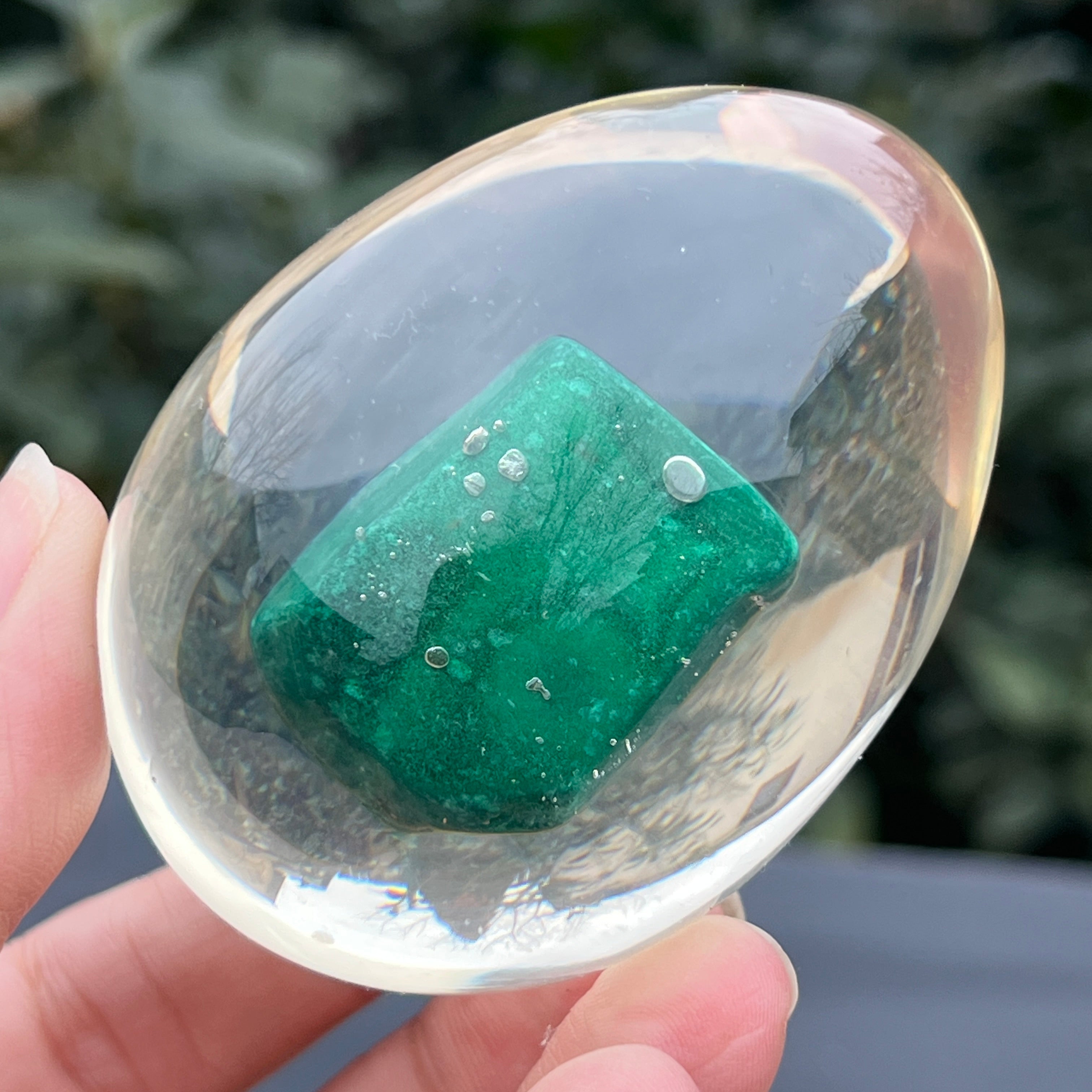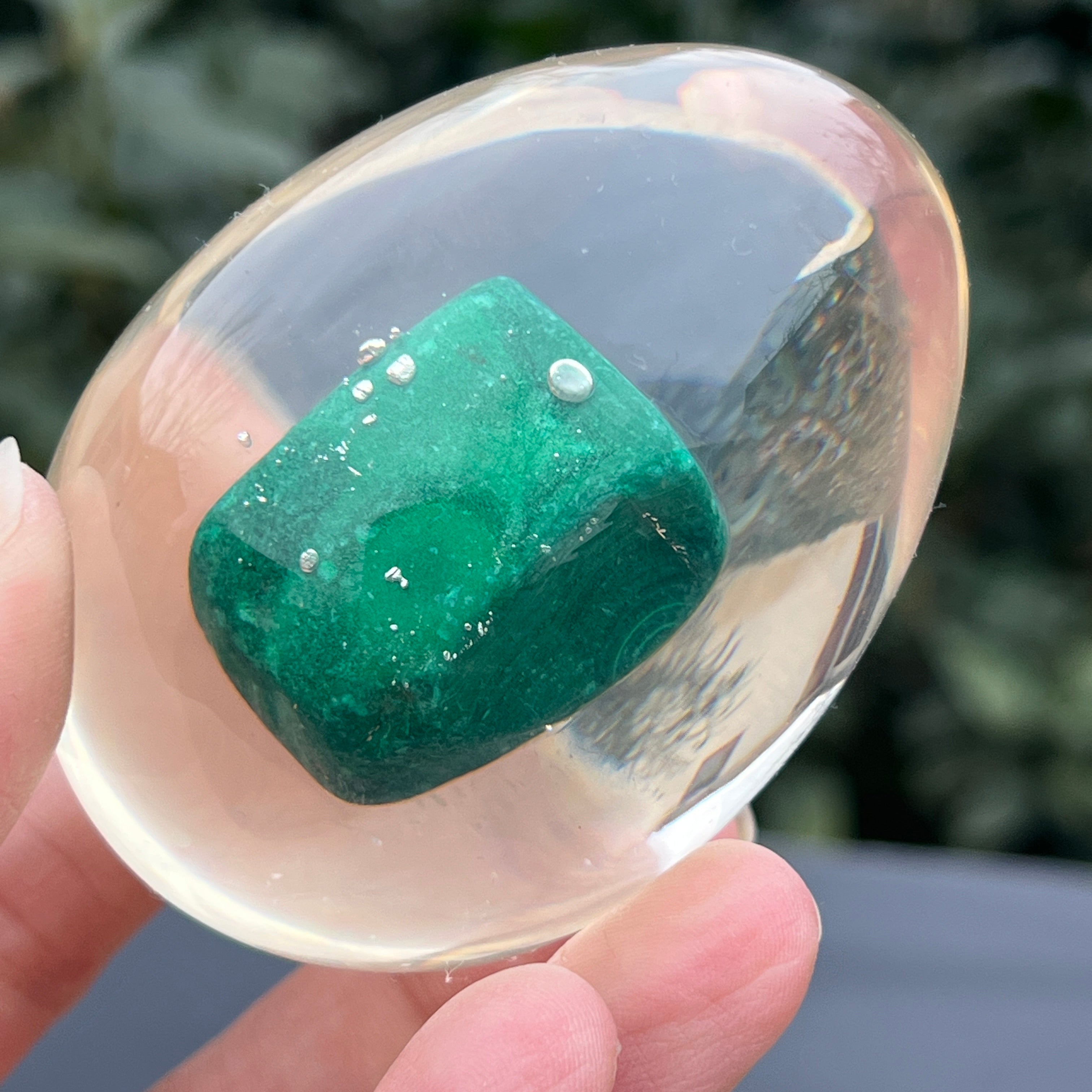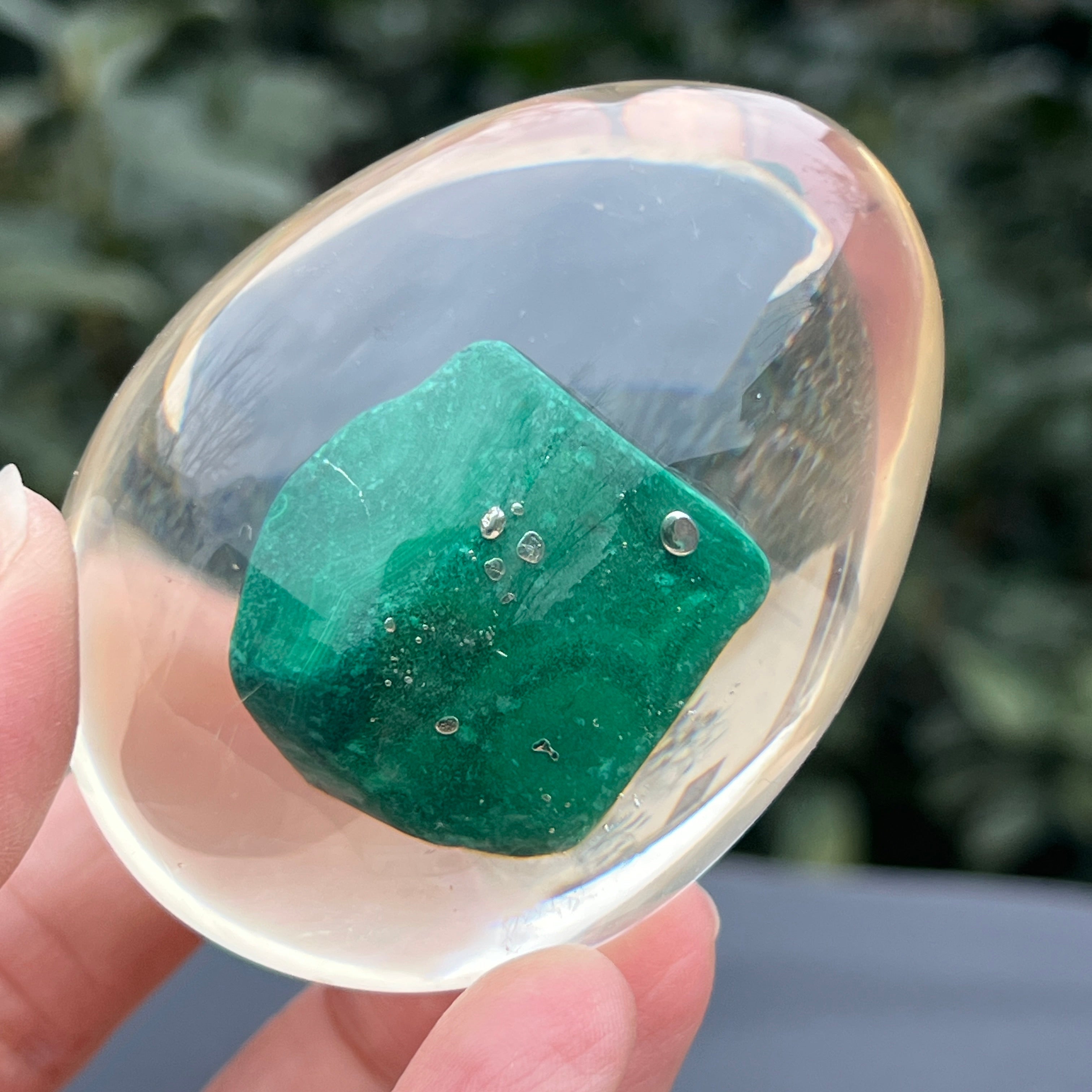 Яйце от малахит в смола от Конго, модел 1, размер: 7.1 * 5.3 см