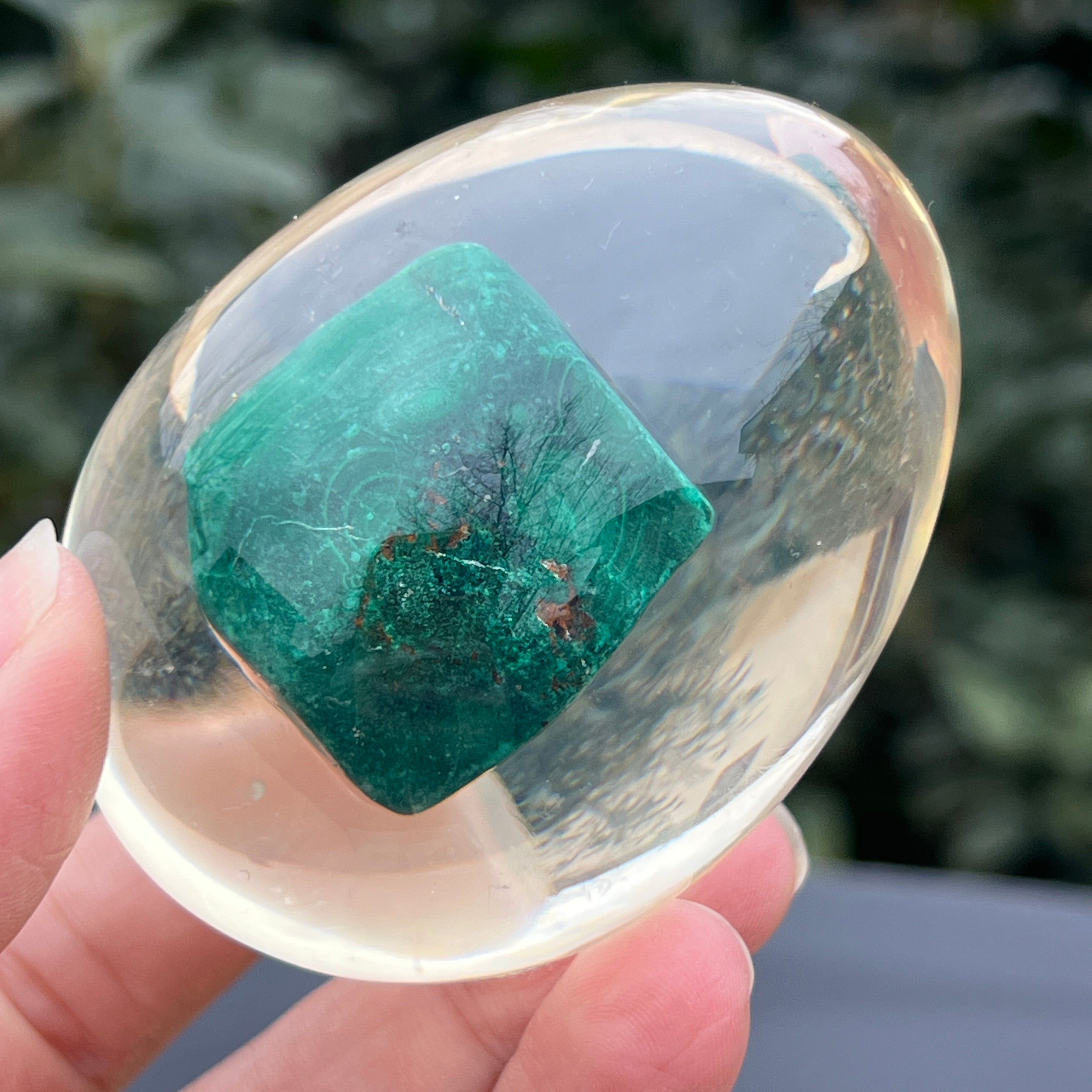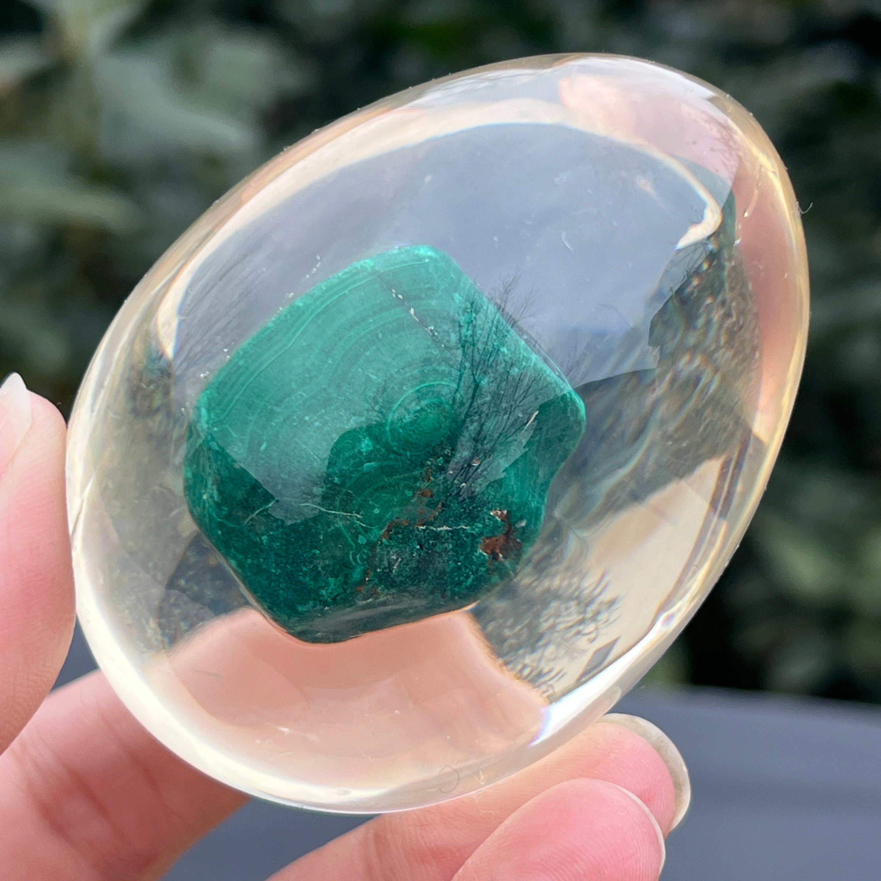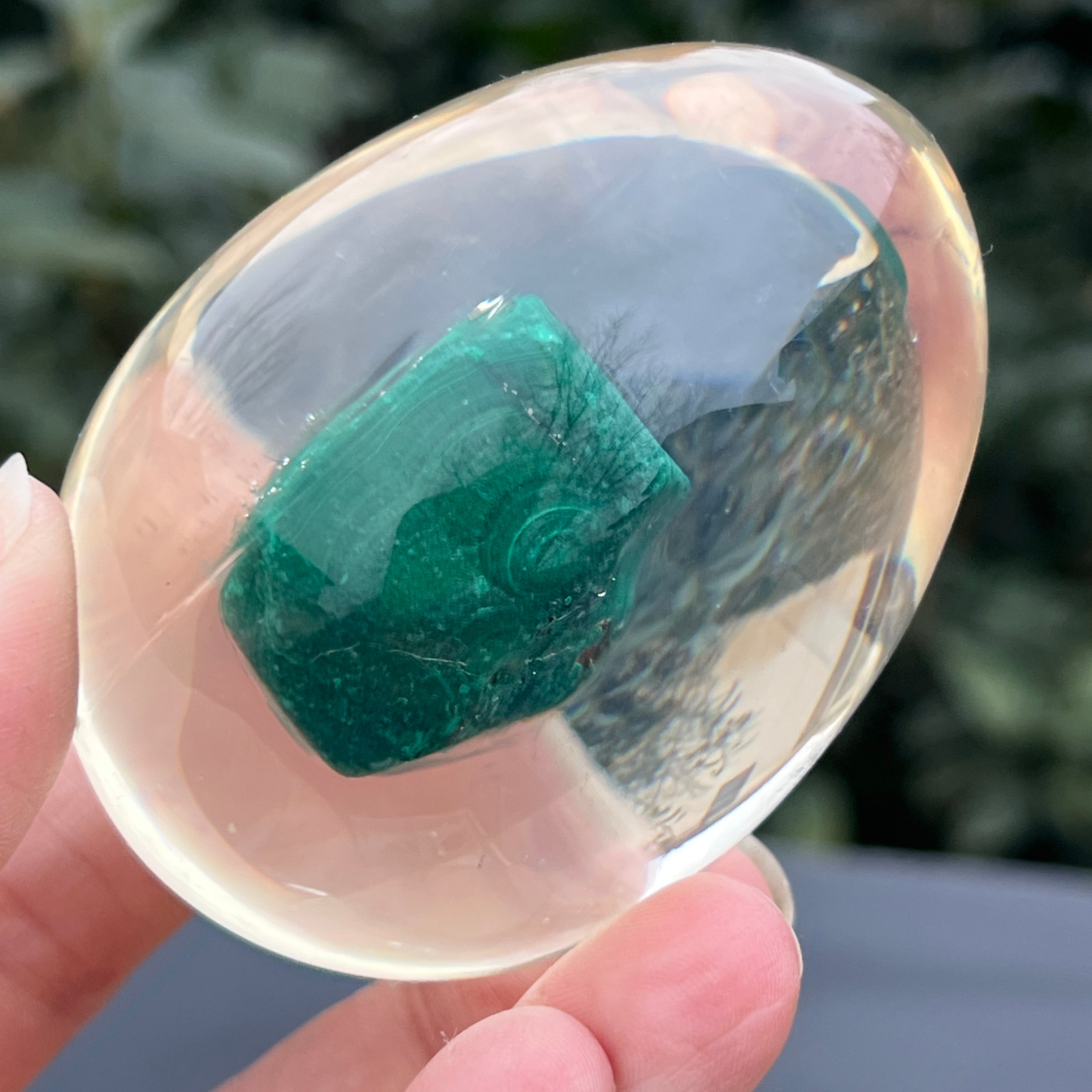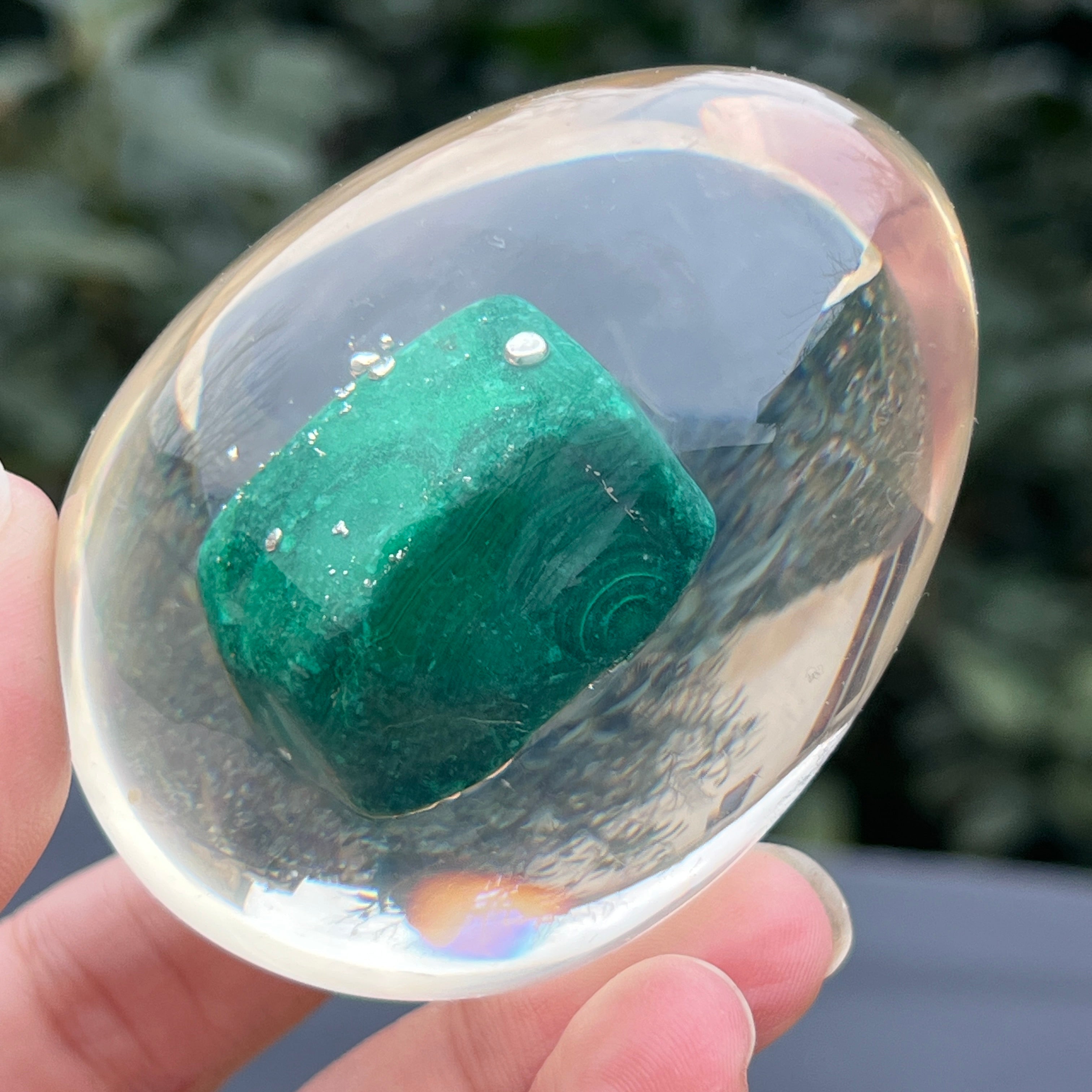 Яйце от малахит в смола от Конго, модел 1, размер: 7.1 * 5.3 см