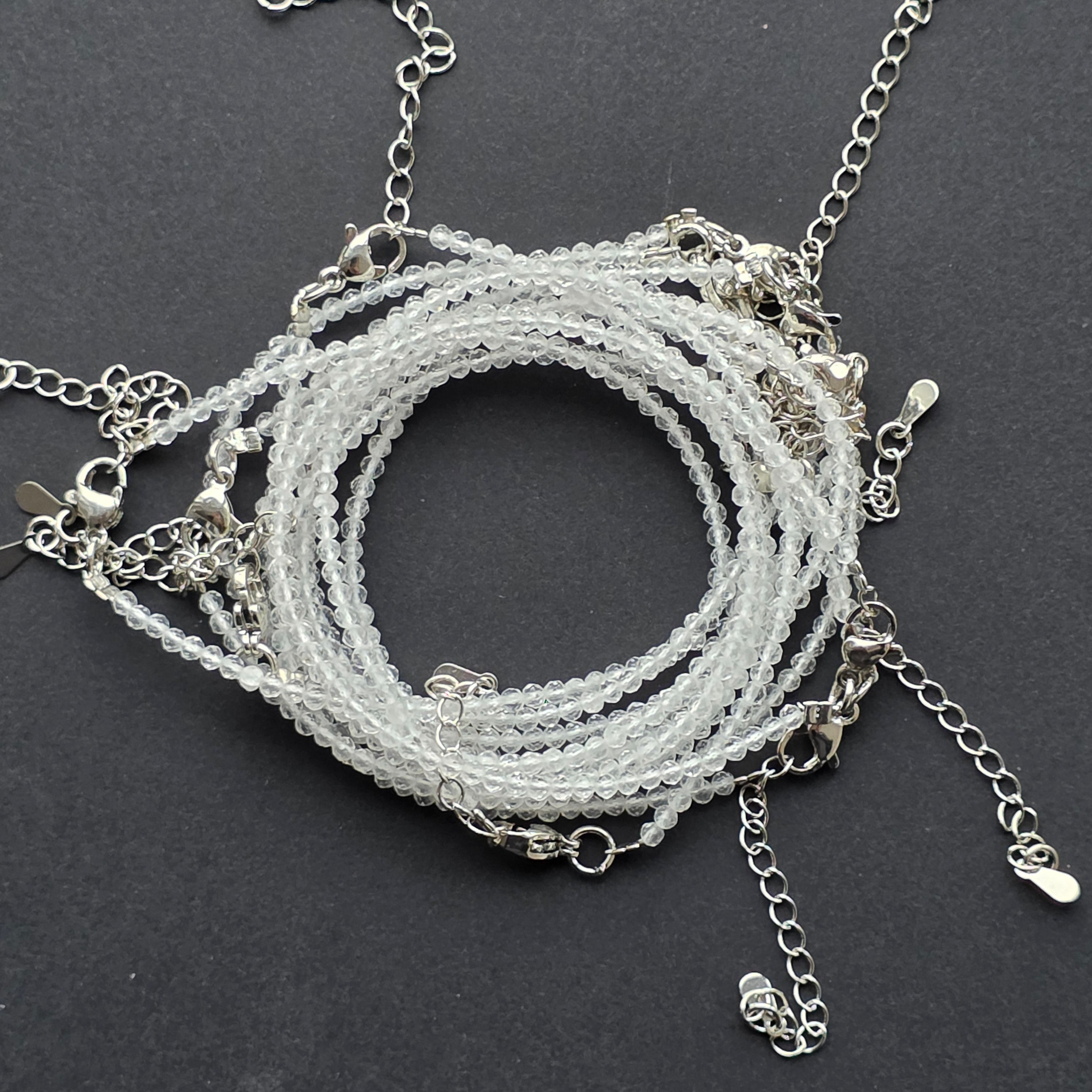 2 мм регулируема гривна от скален кварц/безцветен кристал