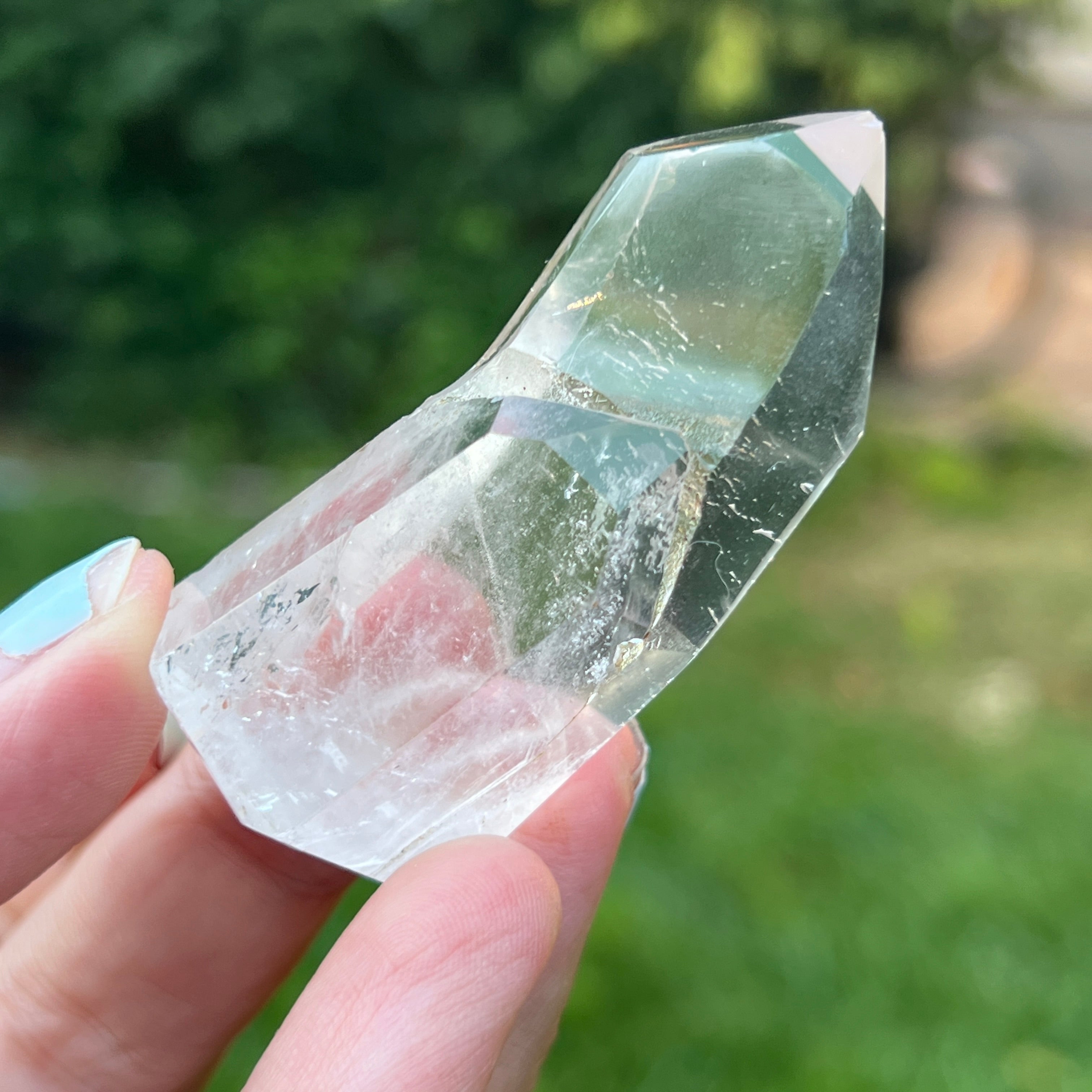 Безцветният кварц е особено ценен заради пречистващото свойство, което придава на медитациите или пространствата, в които е поставен.