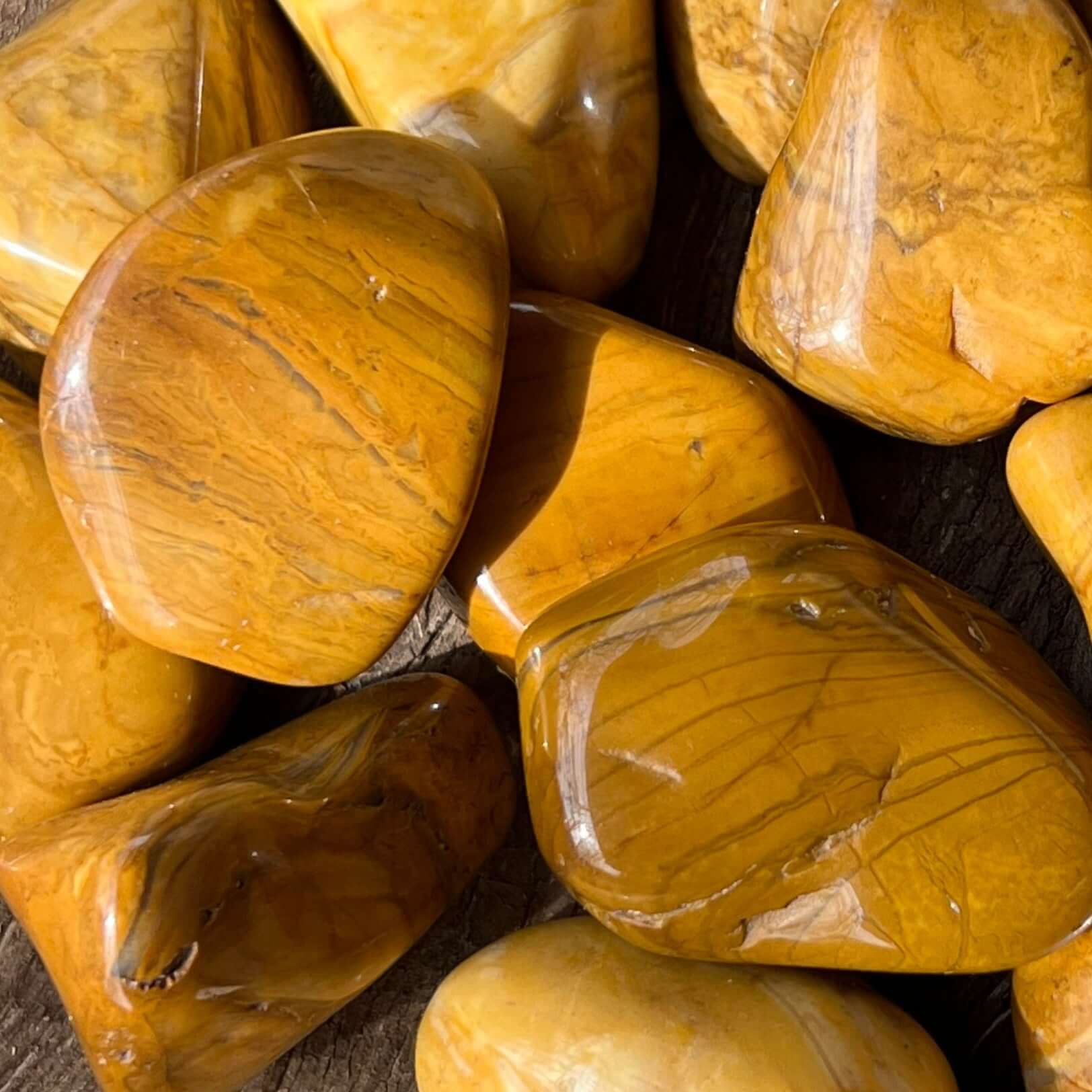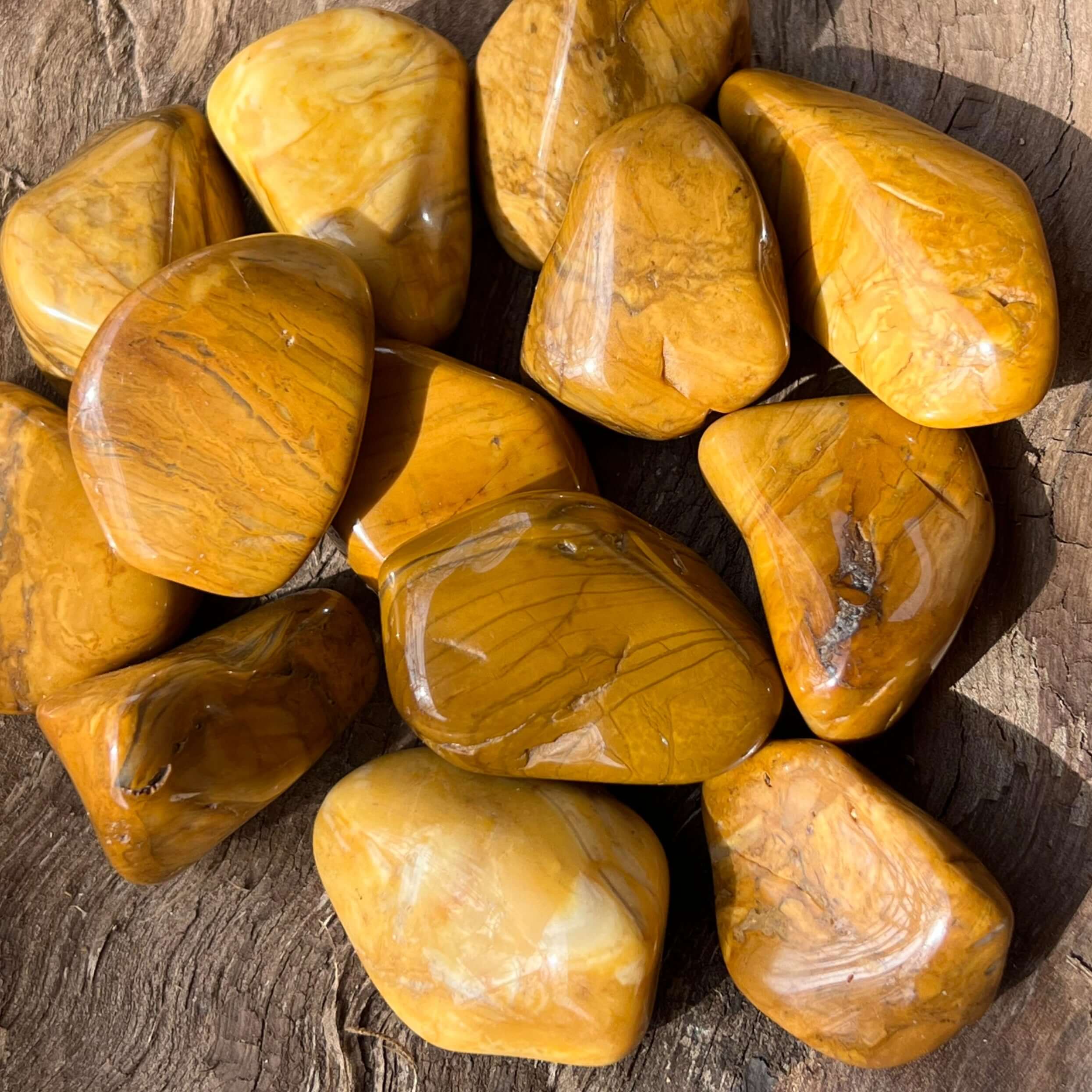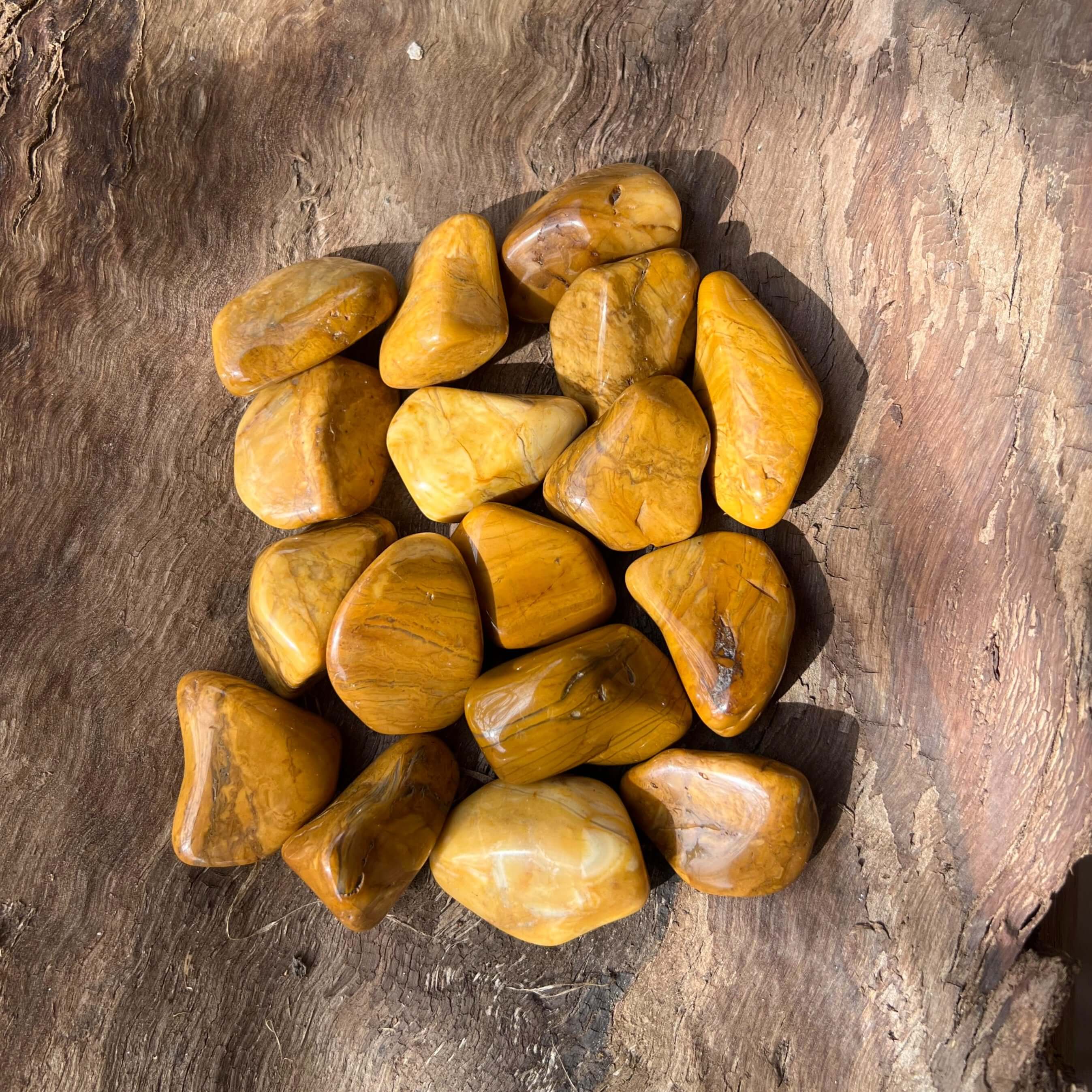 Жълт яспис мини валцов камък, размери между 3 и 4.5 см. Цената варира в зависимост от размера на камъка, моля, изберете желания от вас размер.