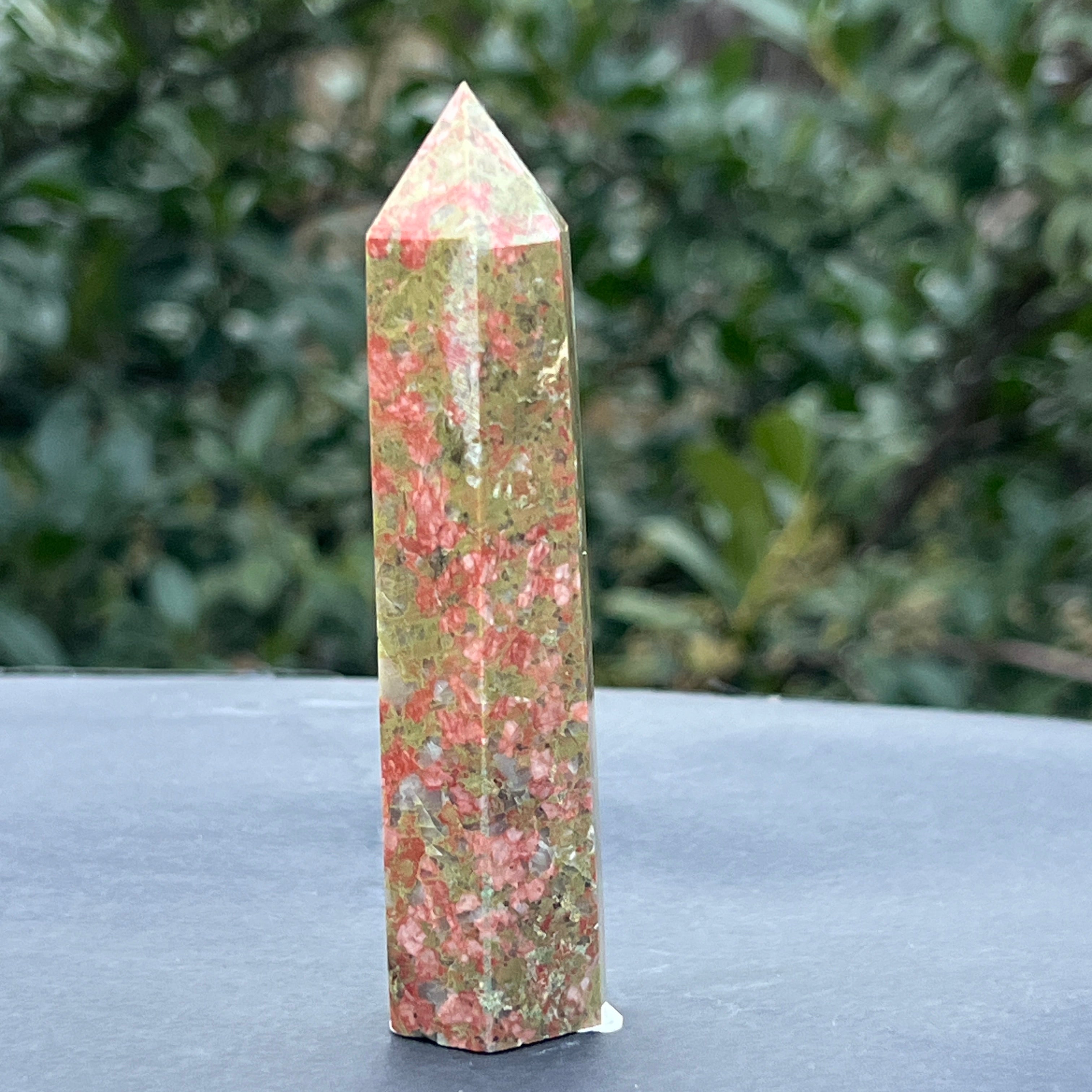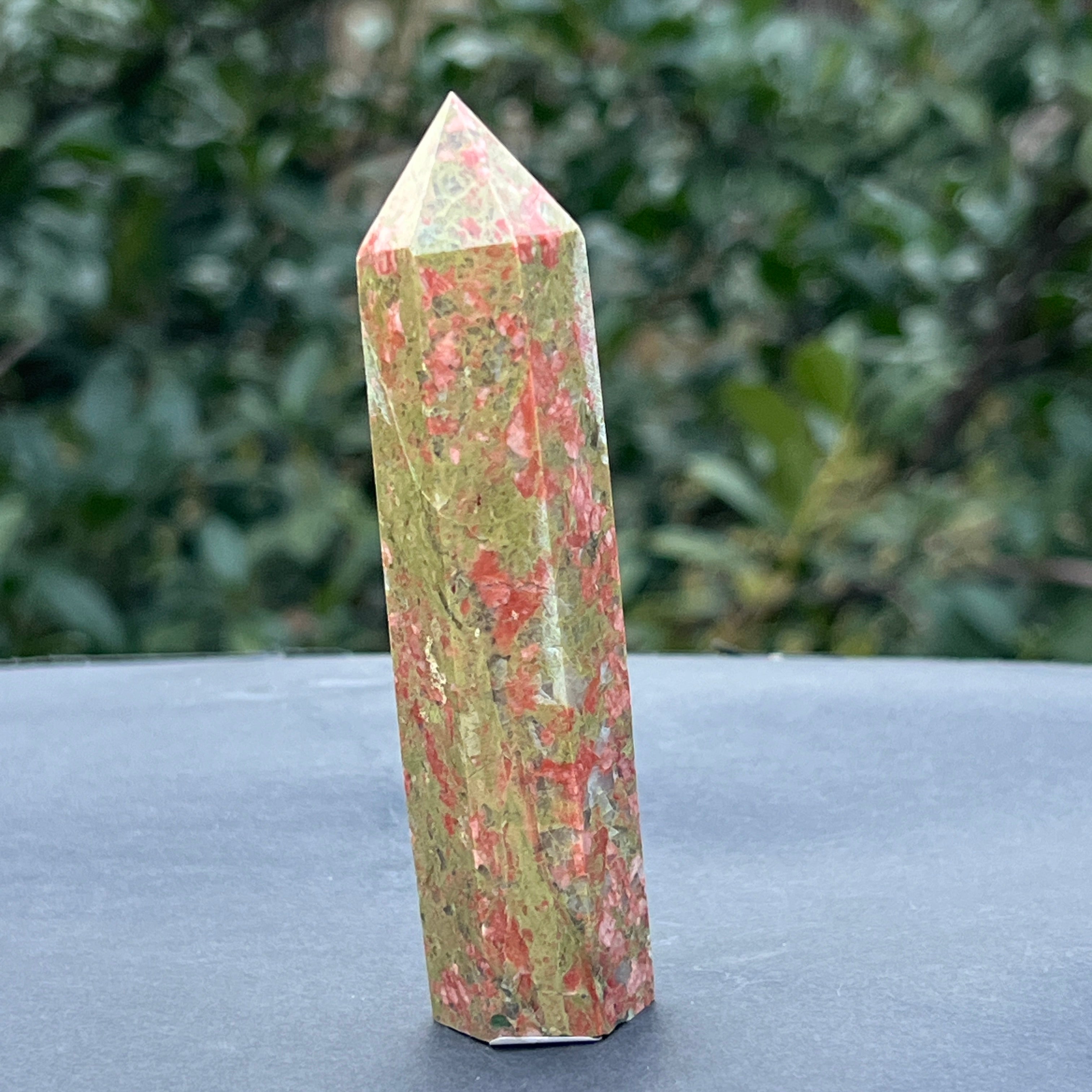 Унакит е полускъпоценен камък, съставен от фиспат, епидот, кварц, слюда.