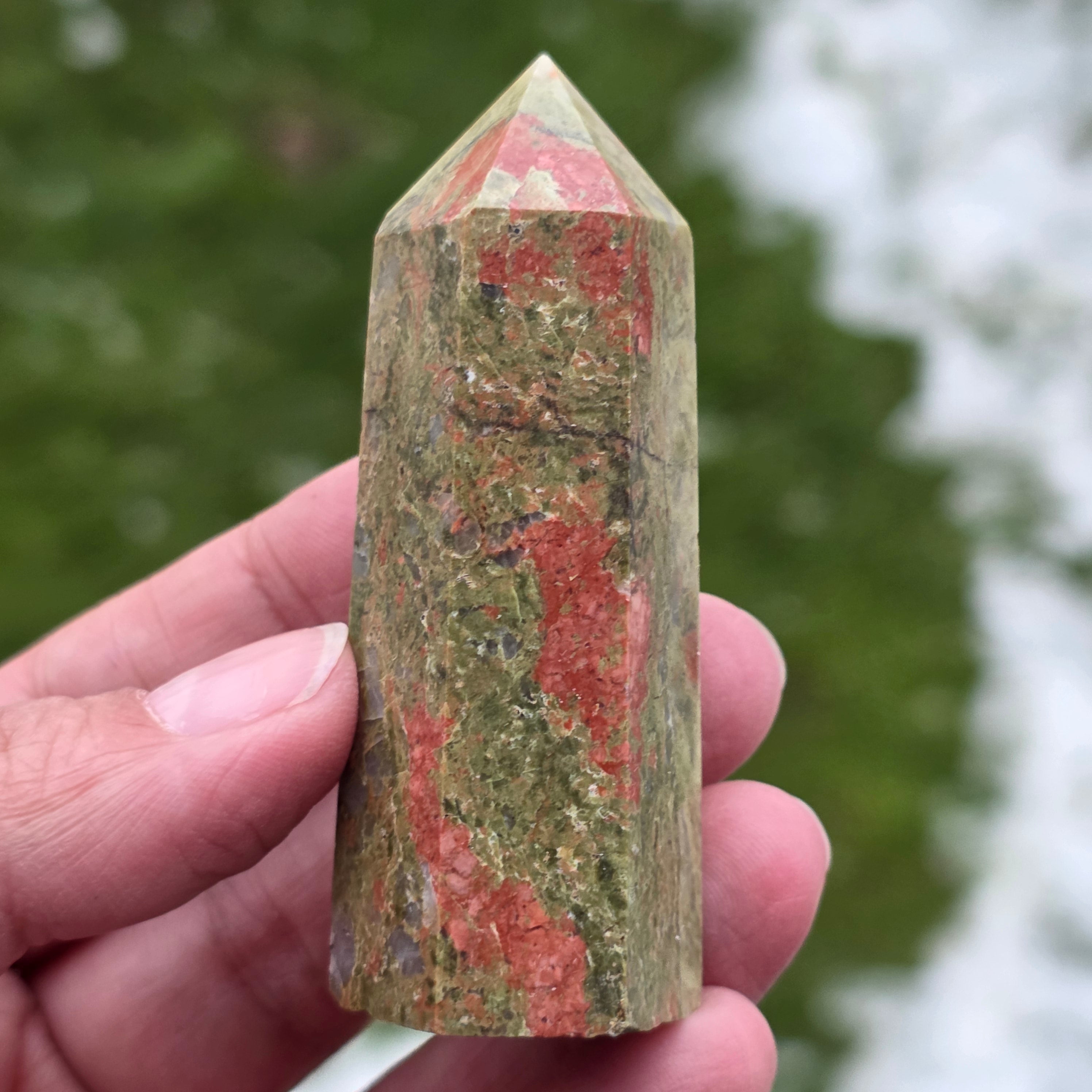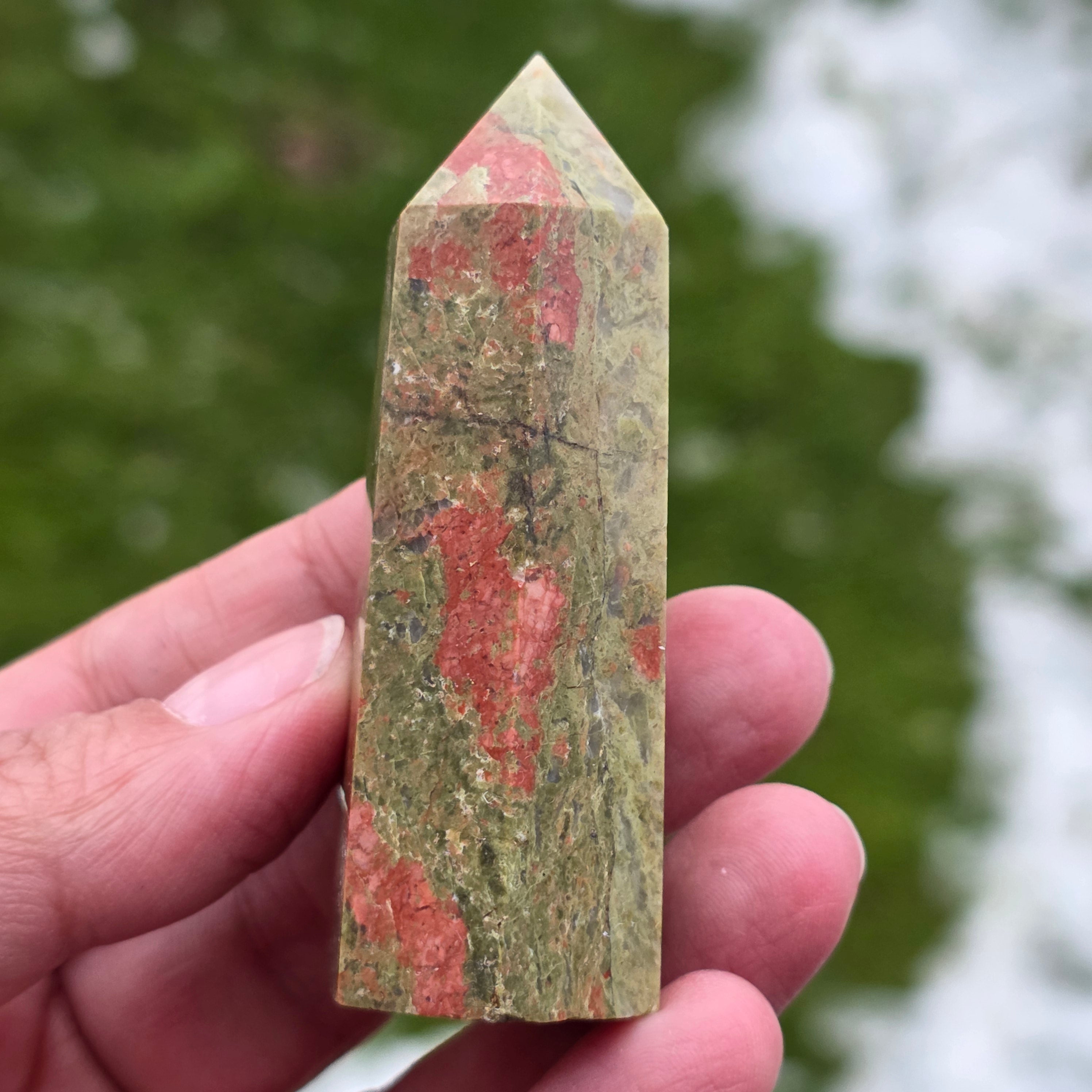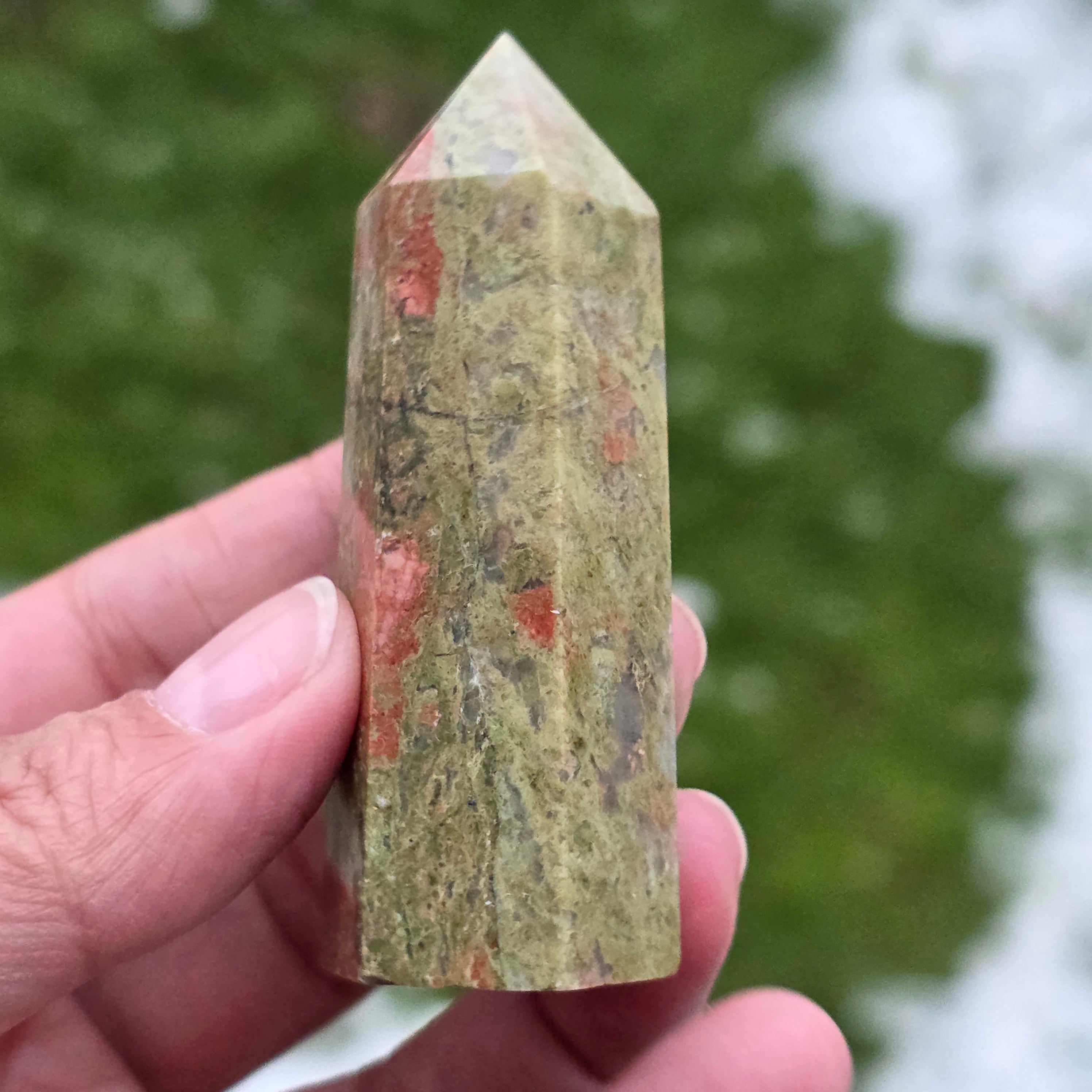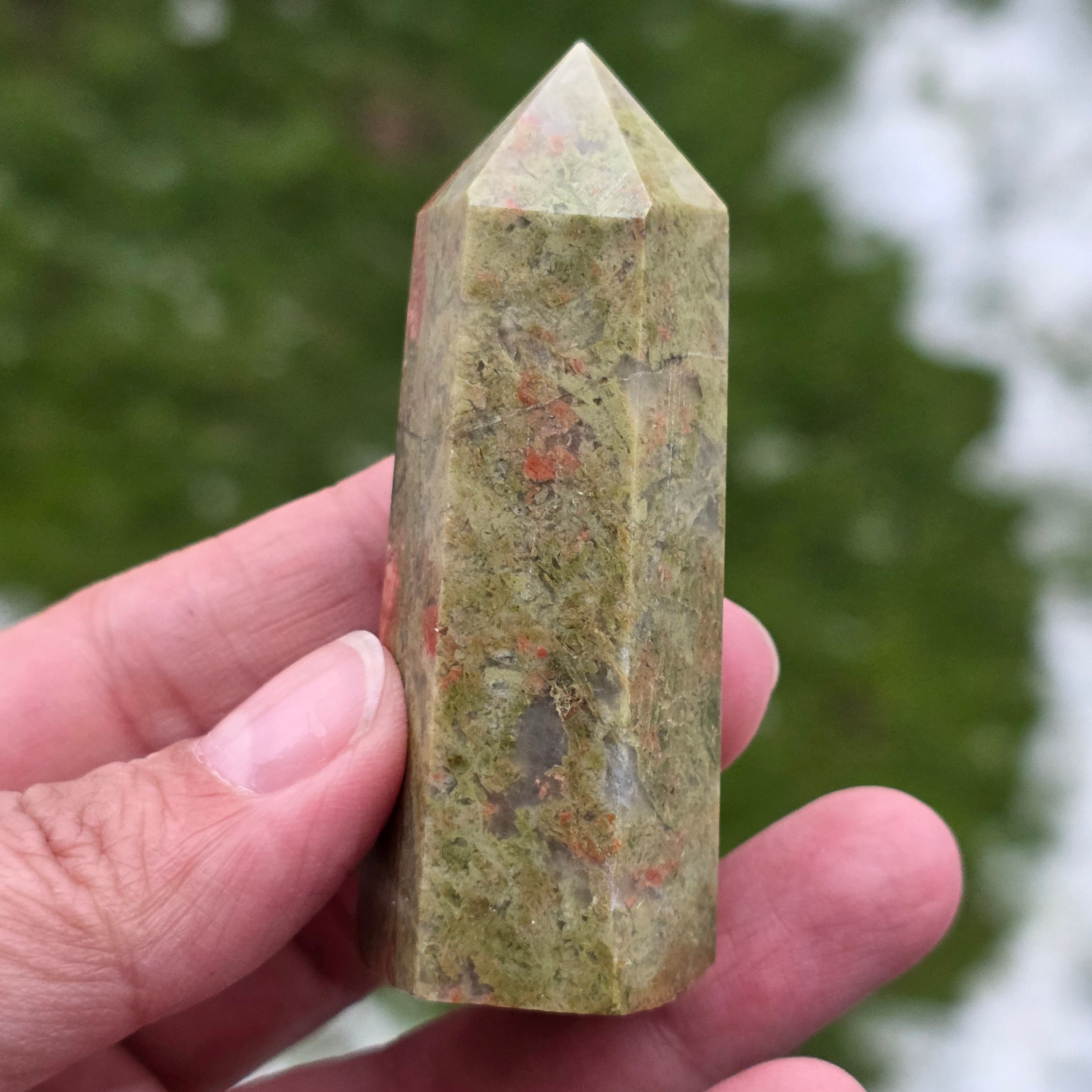 Унакит е полускъпоценен камък, съставен от фиспат, епидот, кварц, слюда.