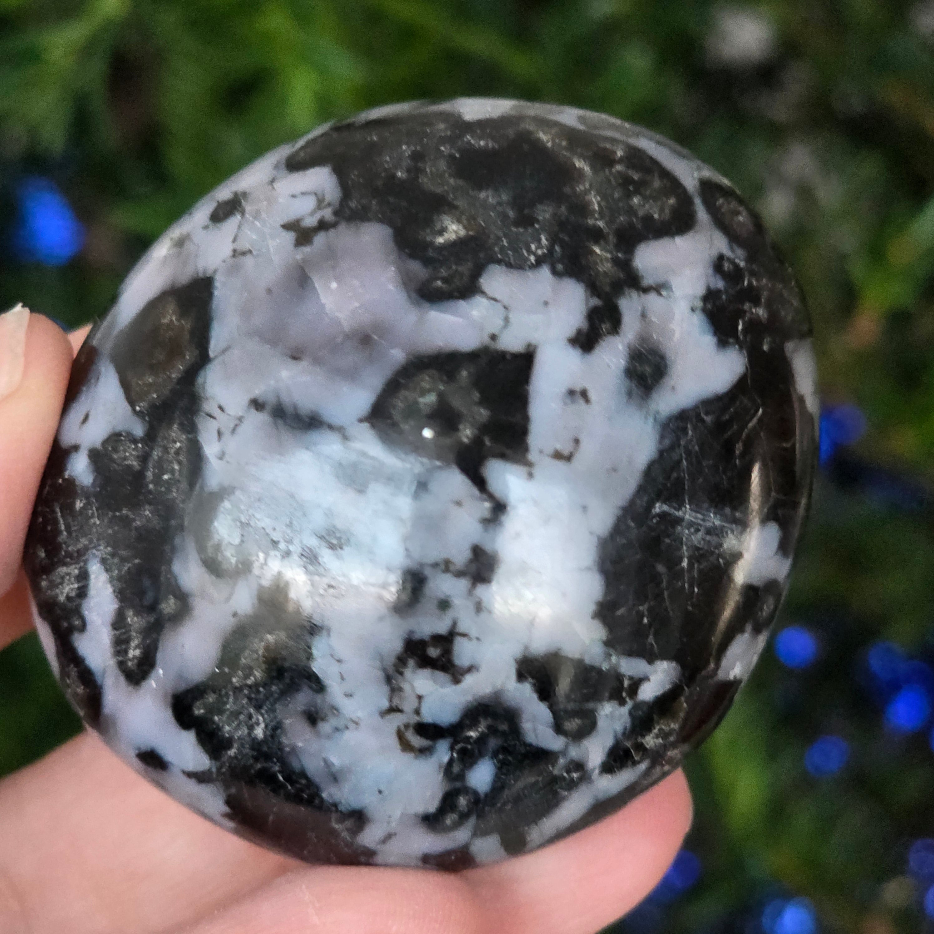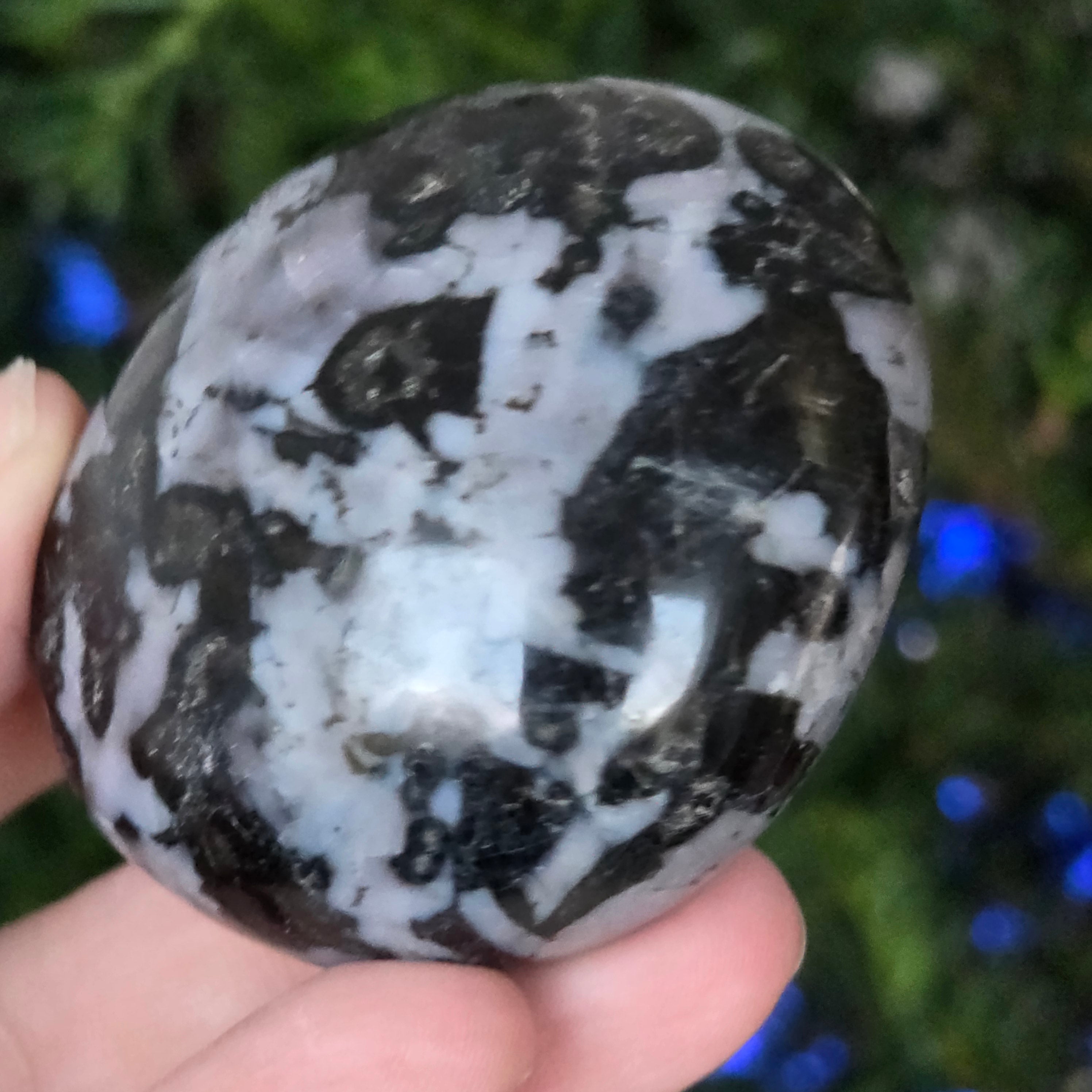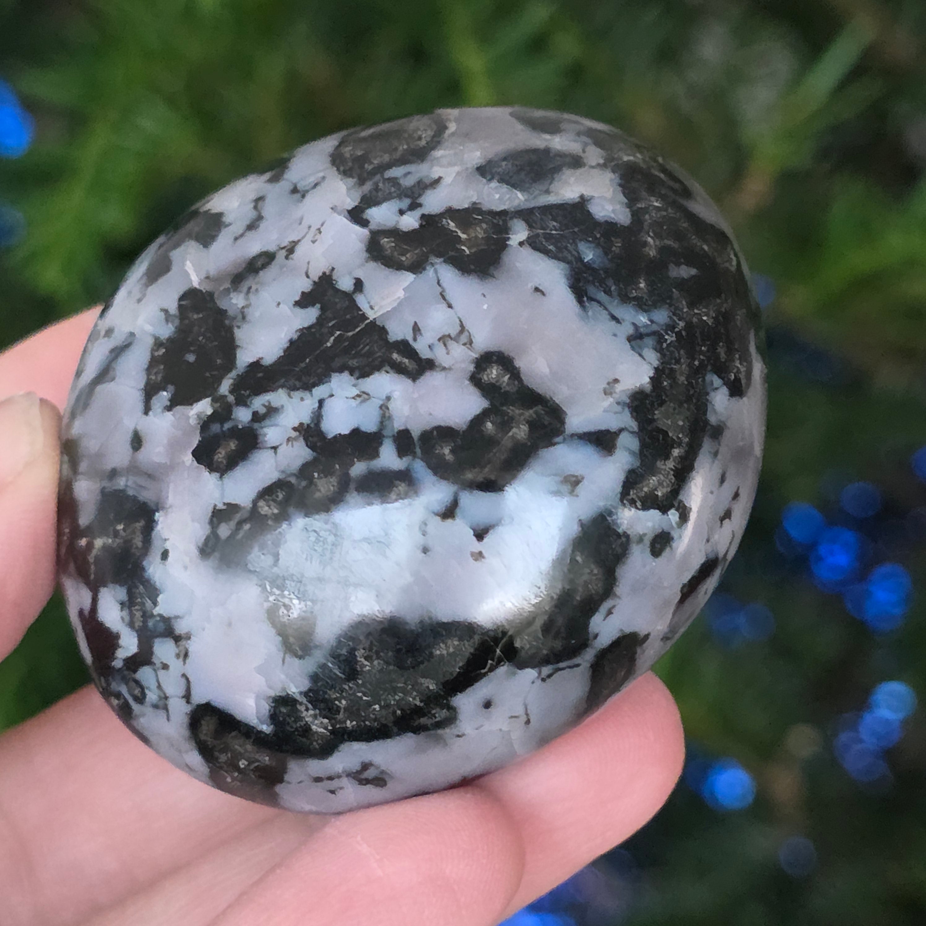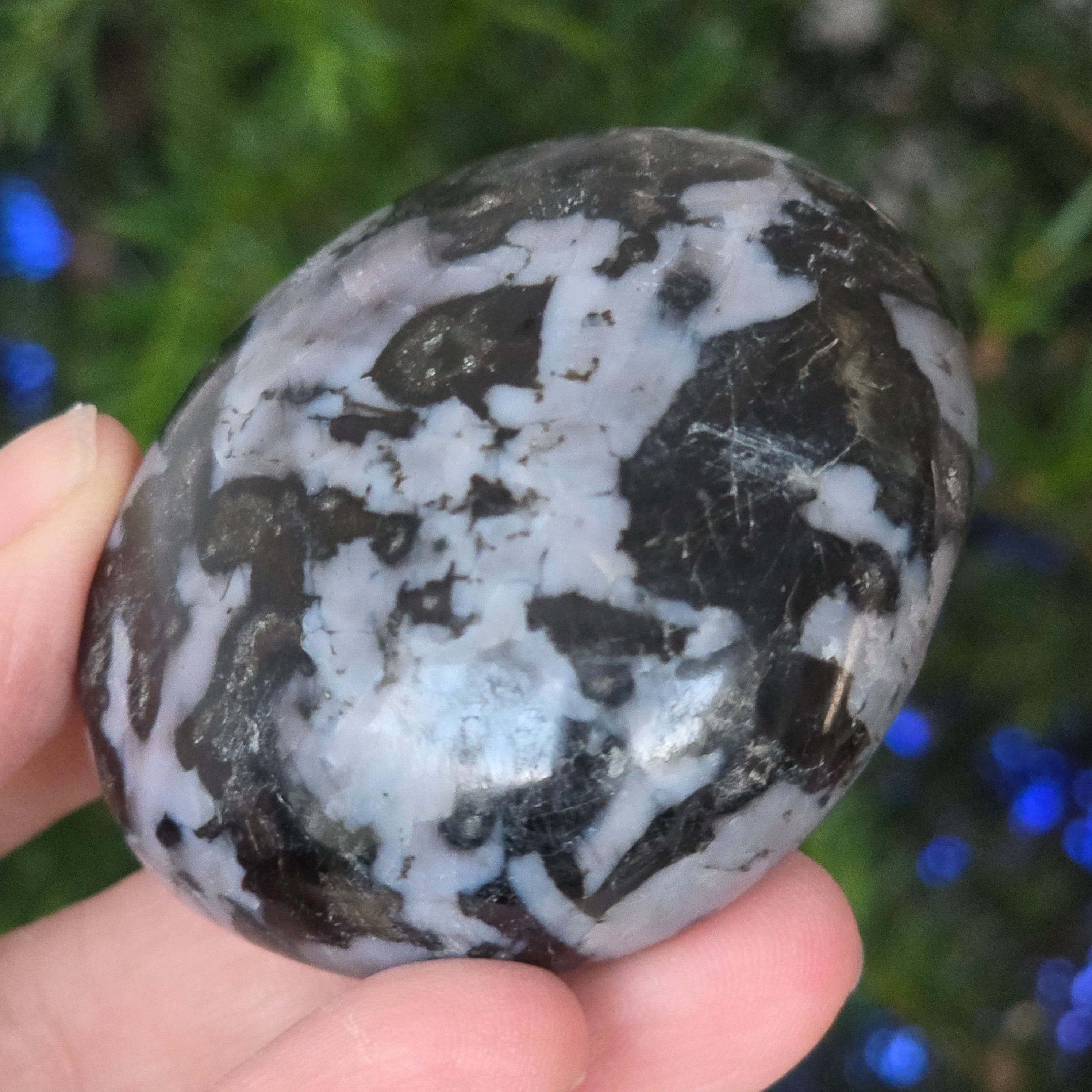Мерлинитът е рядък и очарователен полускъпоценен камък, известен с комбинацията си от контрастни цветове – бяло и черно, което му придава уникален вид. Смята се за разновидност на дендритен опал или комбинация от кварц и други минерали, а сложната му структура го прави ценен както за красотата си, така и за предполагаемите му енергийни свойства. Мерлинитът е известен в света на кристалотерапията със своите мистични енергии и връзка с интуицията, ясновидството и духовното познание.