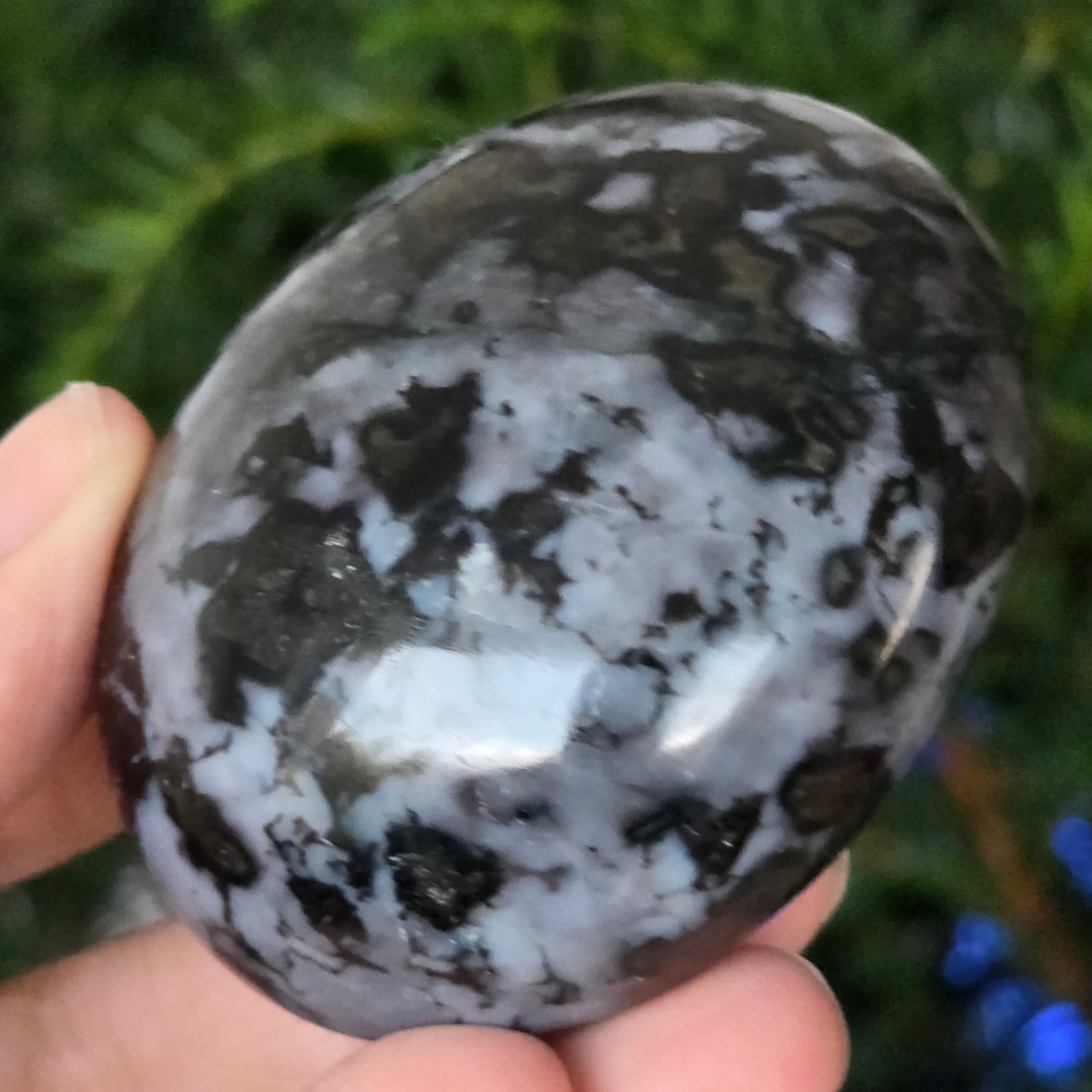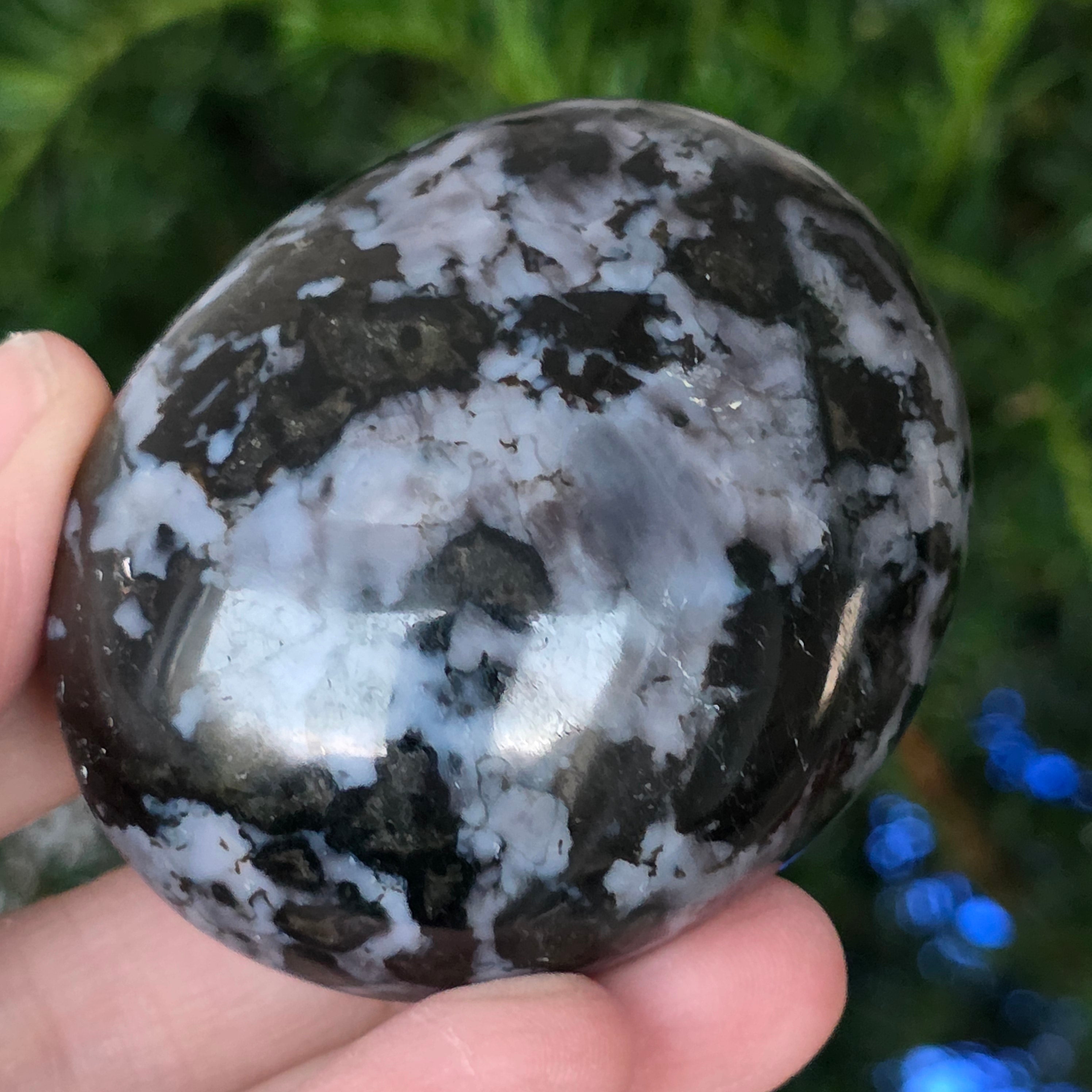 Мерлинитът е рядък и завладяващ полускъпоценен камък, известен със своето съчетание на контрастни цветове, бяло и черно, което му придава уникален външен вид. Счита се за разновидност на дендритен опал или комбинация от кварц и други минерали, а сложната му структура го прави ценен както за красотата му, така и за предполагаемите му енергийни свойства. Мерлинитът е известен в света на кристалотерапията със своите мистични енергии и асоциацията му с интуицията, ясновидството и духовното знание.