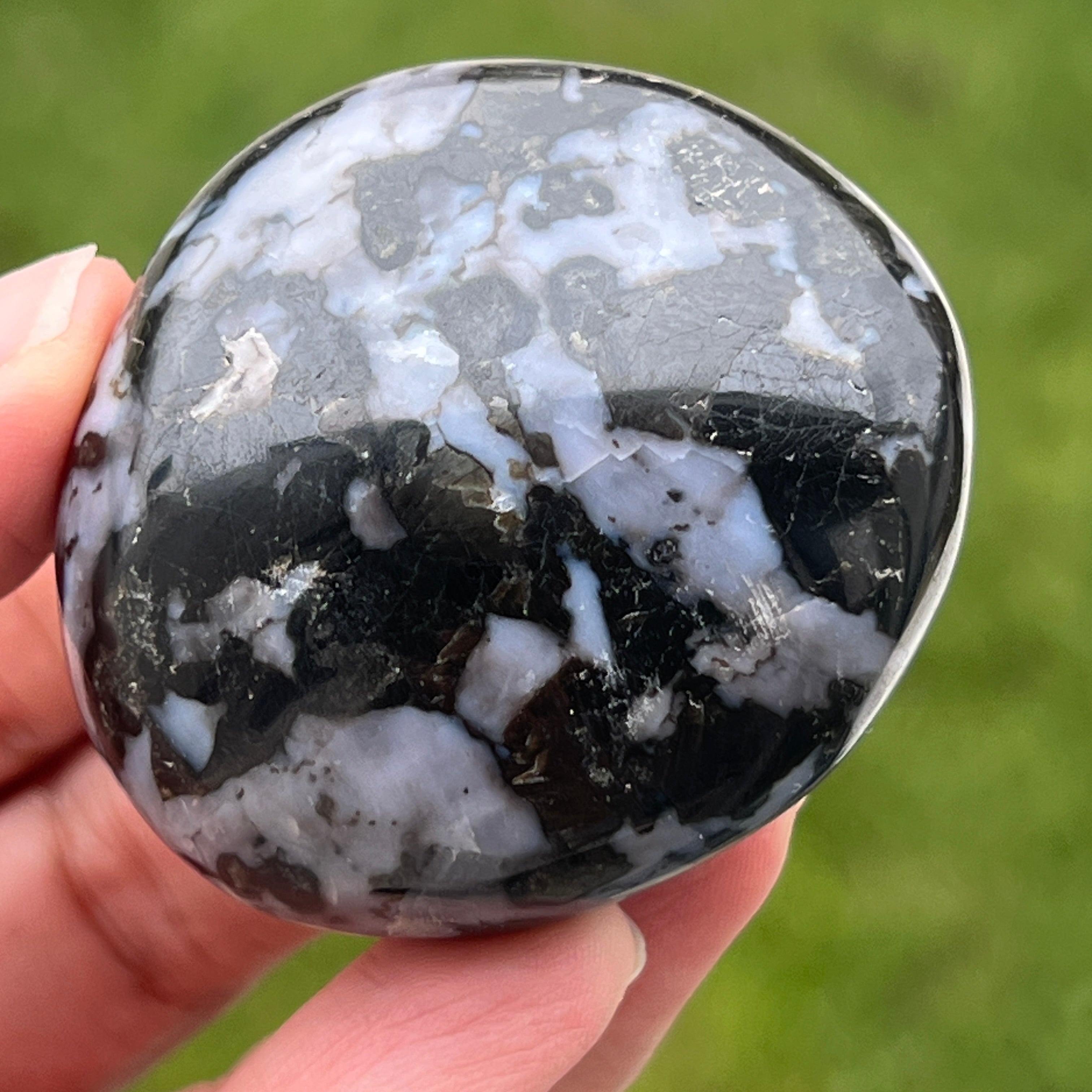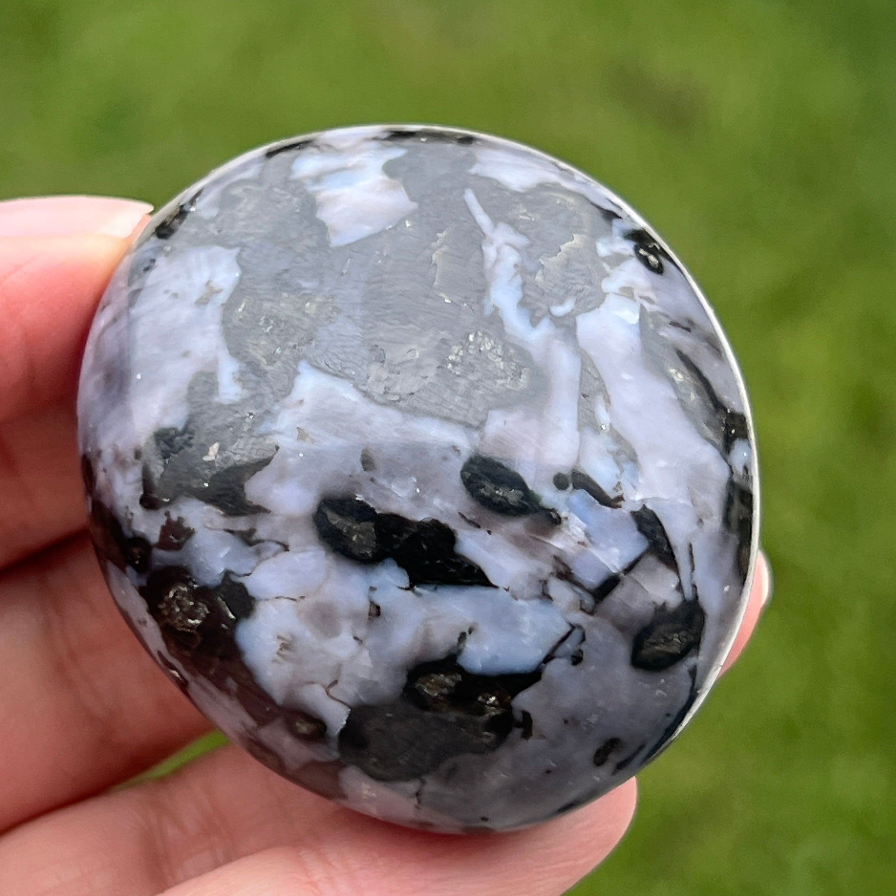 Мерлинитът е рядък и впечатляващ полускъпоценен камък, известен с комбинацията си от контрастни цветове, бяло и черно, което му придава уникален вид. Смята се за разновидност на дендритен опал или комбинация от кварц и други минерали, а сложната му структура го прави ценен както заради красотата, така и за предполагаемите му енергийни свойства. Мерлинитът е познат в света на кристалотерапията със своите мистични енергии и връзката с интуицията, ясновидството и духовното знание.