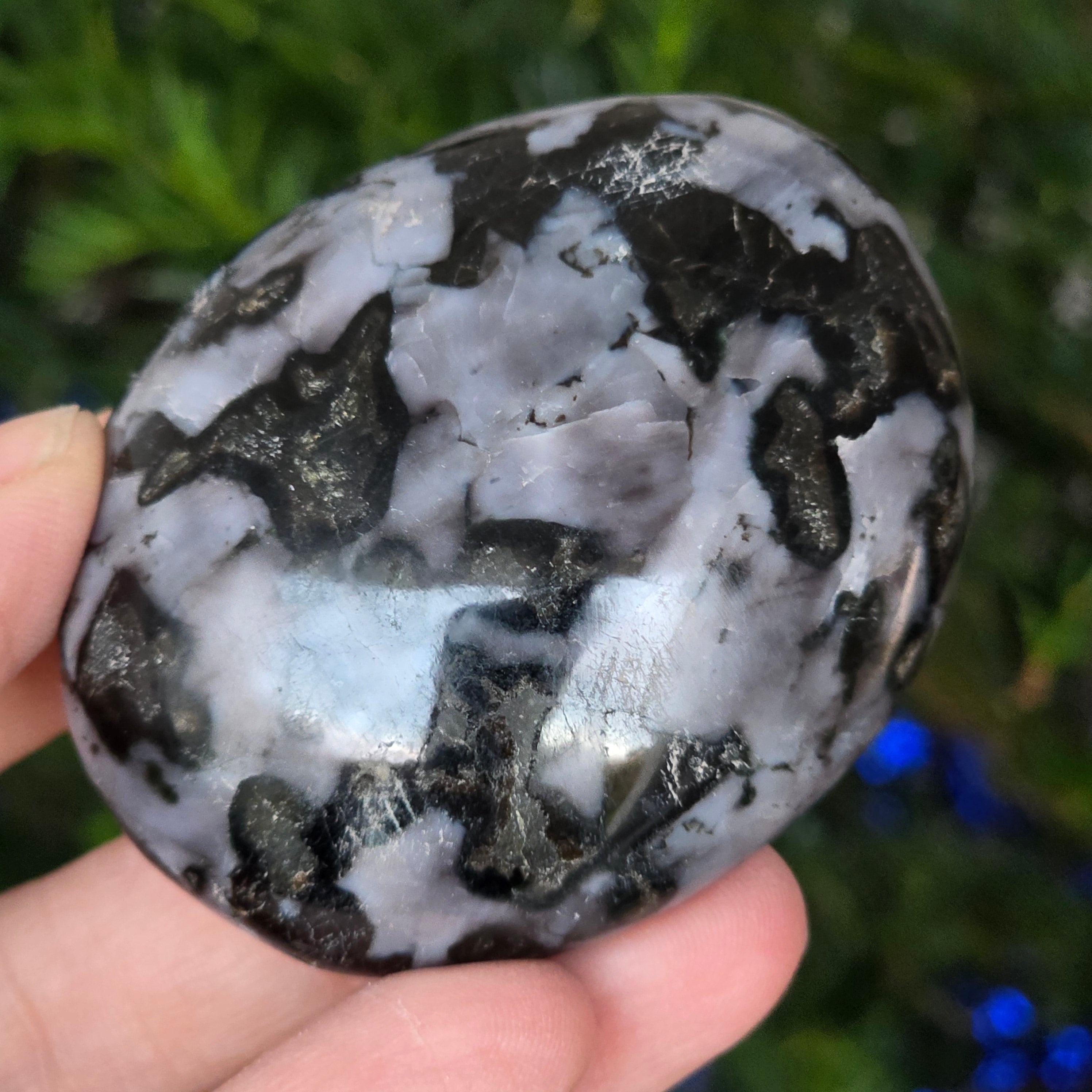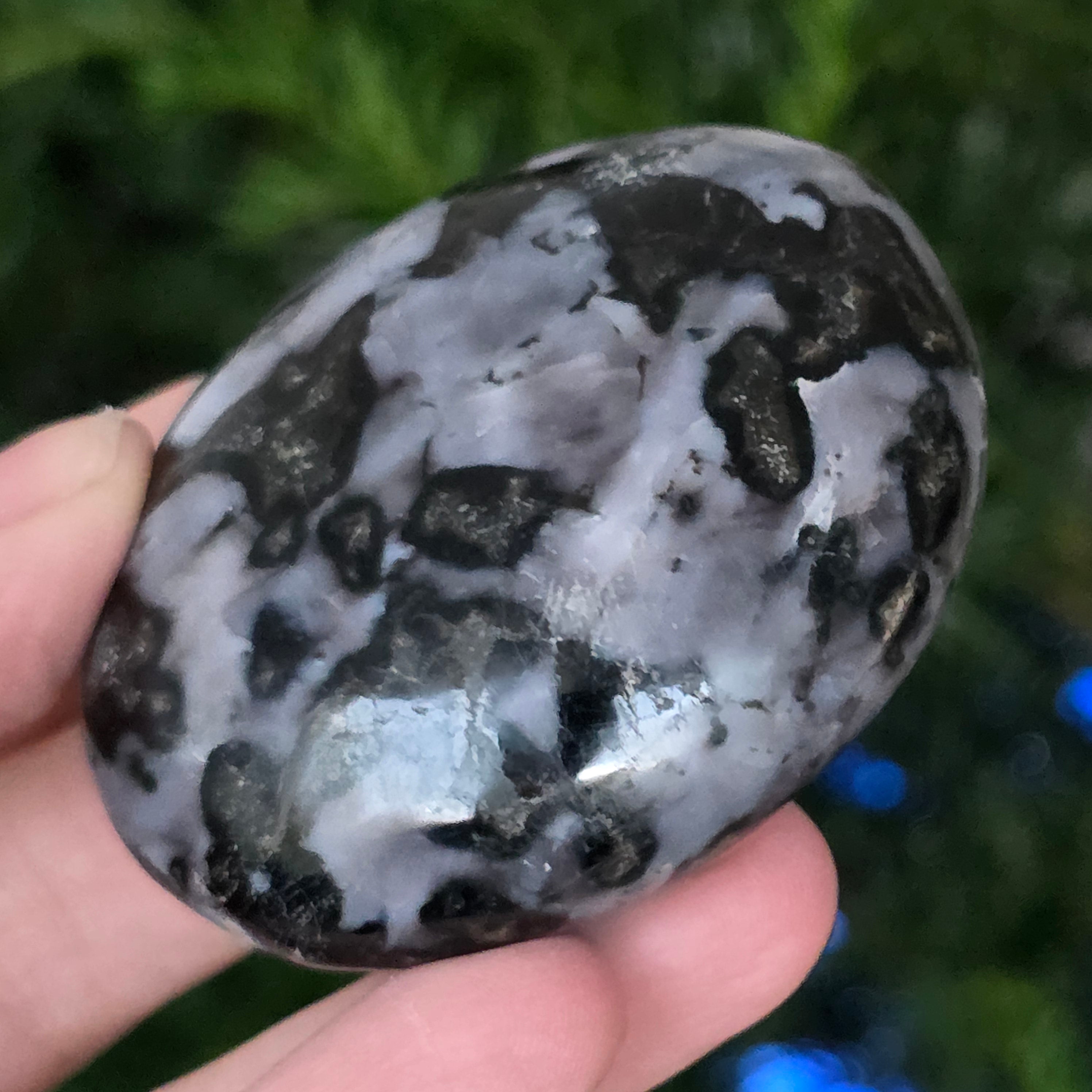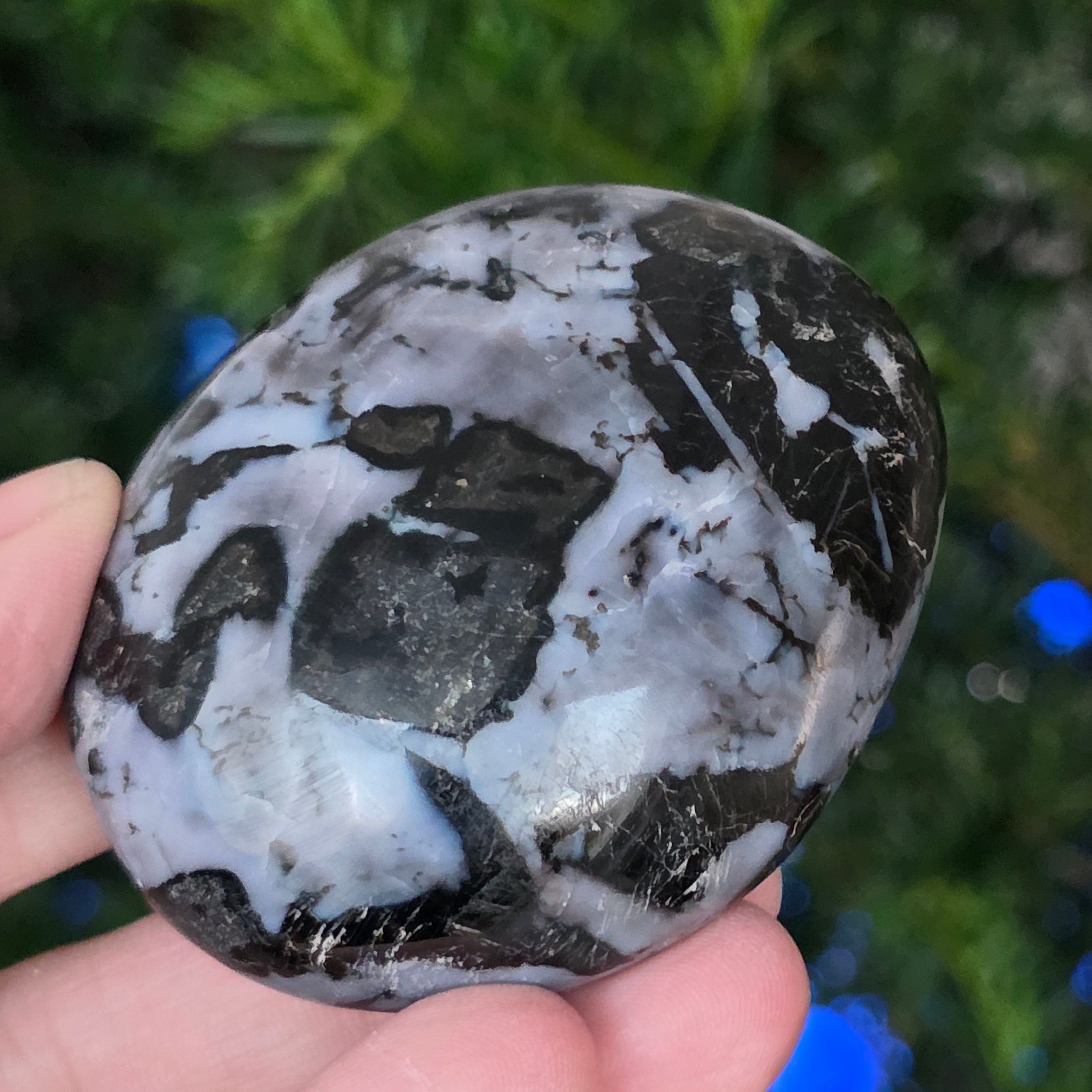 Мърлинитът е рядък и завладяващ полуценен камък, известен с комбинацията си от контрастиращи цветове – бяло и черно, които му придават уникален вид. Смята се за разновидност на дендритния опал или за комбинация от кварц и други минерали, а сложната му структура го прави ценен както за красотата му, така и за предполагаемите му енергийни свойства. Мърлинитът е известен в света на кристалотерапията с мистичните си енергии и връзката си с интуицията, ясновидството и духовното знание.