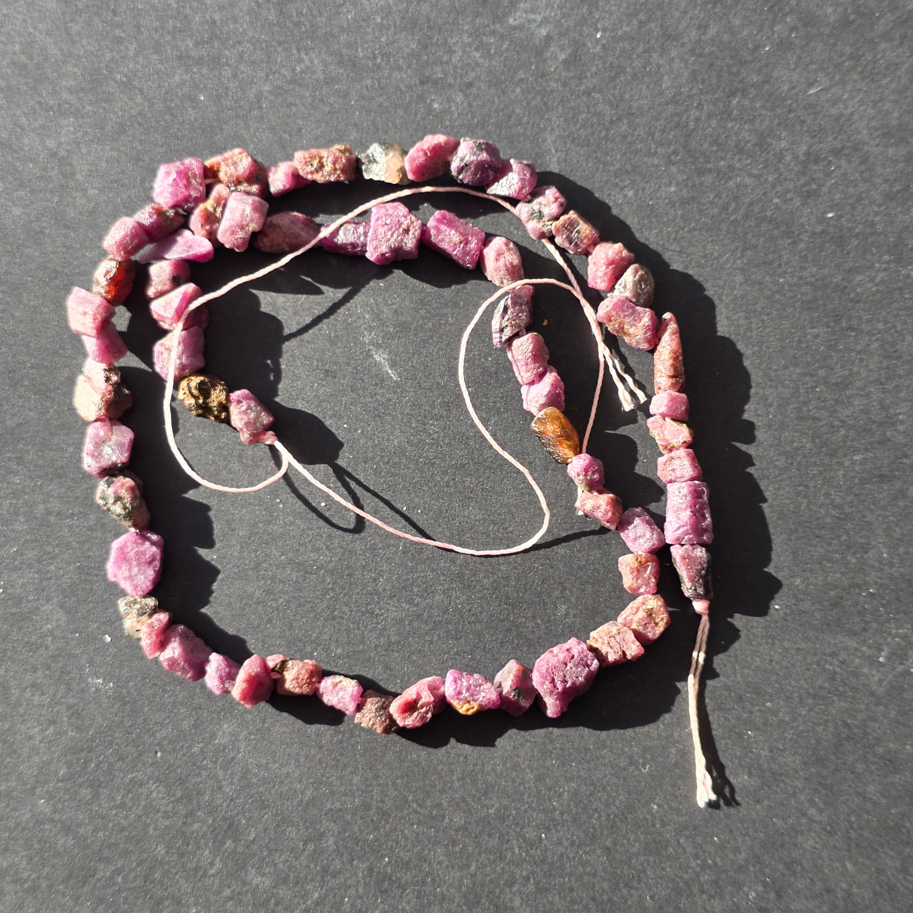 РУБИНЕН сироп, съставен от естествени необработени камъни, идеален за колиета, гривни или други ръчно изработени бижута.