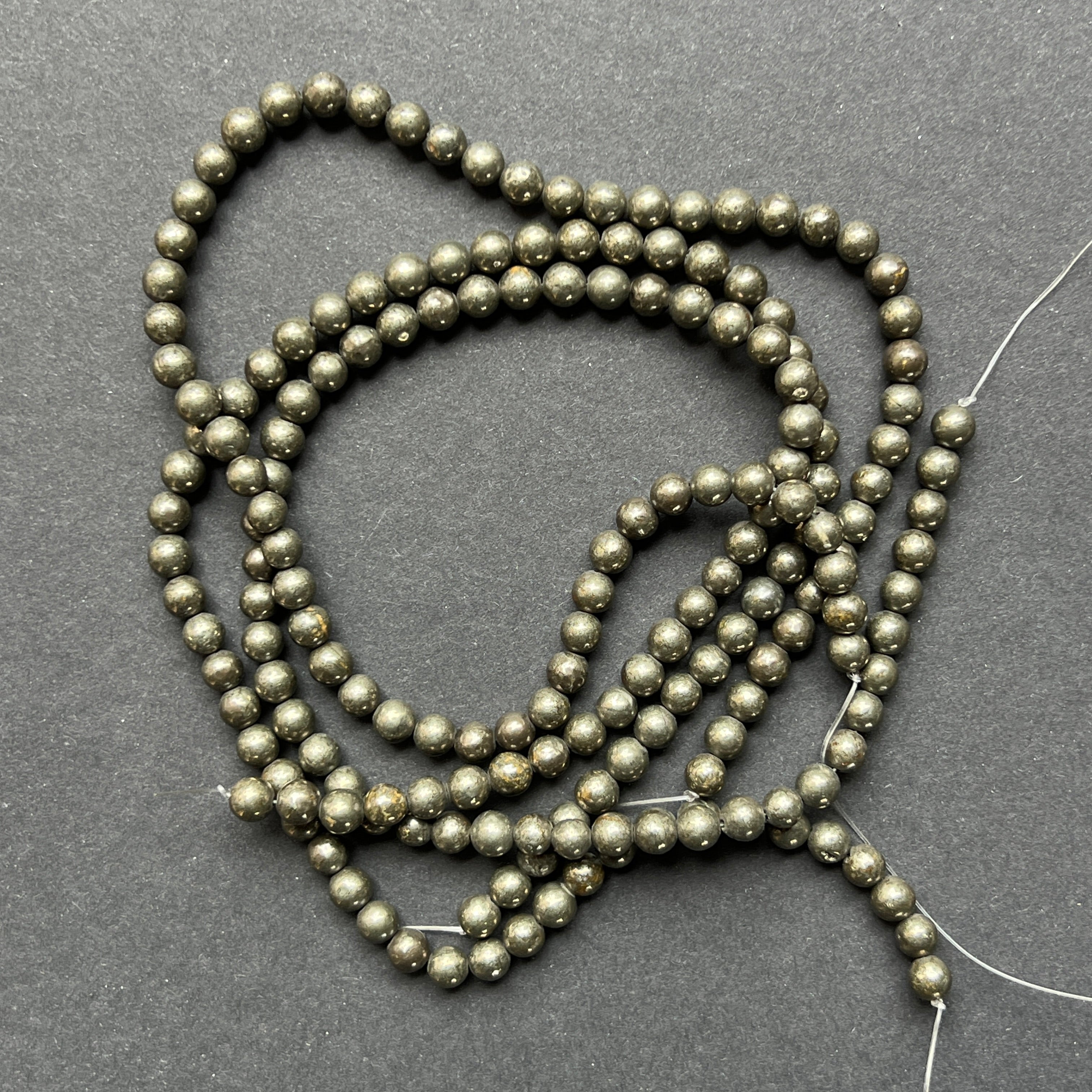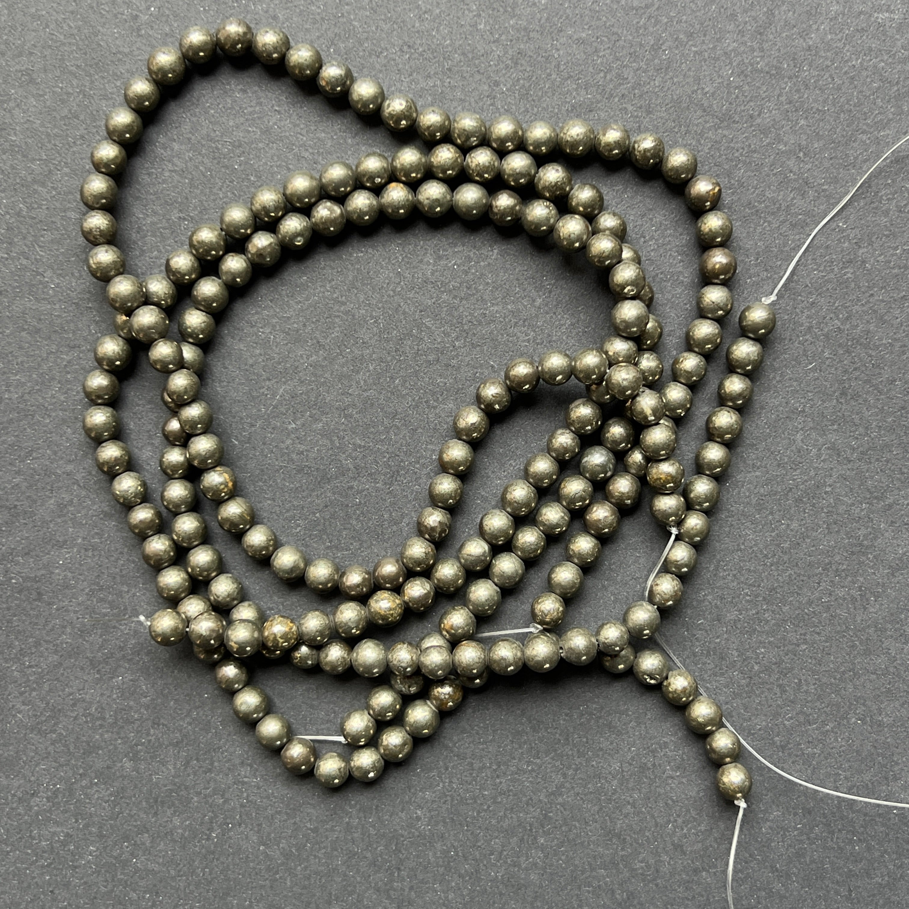 Струна от ПИРИТ, съставен от естествени сферични мъниста, идеален за колиета, гривни или други ръчно изработени бижута.